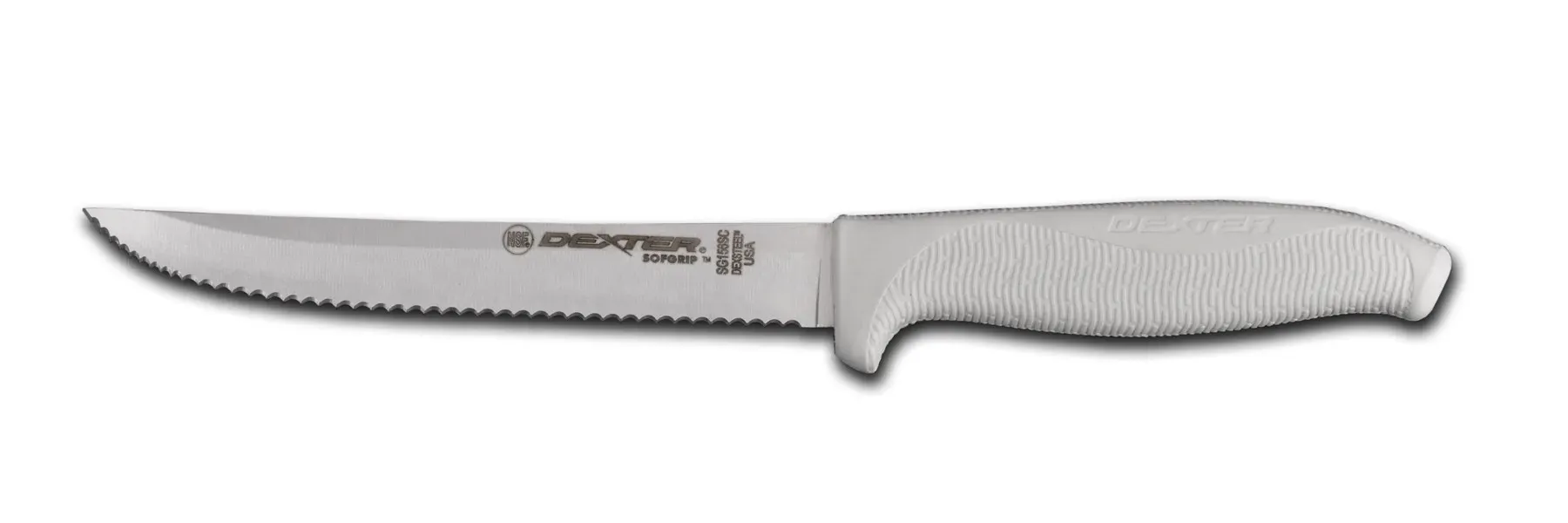 Elevate your culinary game with the Dexter Russell, 24213, Utility Knife. This 6" scalloped utility knife is a must-have tool for any commercial restaurant. With its razor-sharp blade and ergonomic handle, it effortlessly slices through meats, fruits, and vegetables, making food preparation a breeze. The scalloped edge reduces friction, preventing food from sticking to the blade, ensuring clean and precise cuts every time.