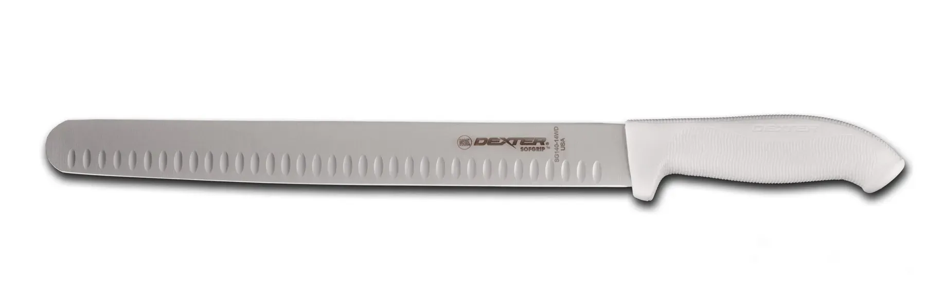 Invest for success with the Dexter Russell, 24283, Slicer. This 14" wide duo-edge roast slicer is a must-have tool for any commercial restaurant. With its razor-sharp blade and durable construction, this slicer is designed to handle the demands of a busy kitchen. Whether you're slicing roast beef, ham, or turkey, this slicer delivers precise and consistent cuts every time. Its ergonomic handle provides a comfortable grip, reducing fatigue during long hours of use. Invest in the Dexter Russell 24283 Slicer and experience the efficiency and reliability that only a top-quality slicing tool can offer.