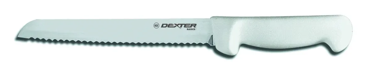 Set standards with the latest equipment. Introducing the Dexter Russell 31603 Knife, a must-have tool for any commercial restaurant. This 8" scalloped bread knife is designed to meet the high demands of a professional kitchen. With its razor-sharp blade and ergonomic handle, this knife ensures precision and comfort during use. The scalloped edge allows for effortless slicing of bread, ensuring clean and even cuts every time. Whether you're slicing baguettes or artisan loaves, the Dexter Russell 31603 Knife is the perfect tool to elevate your culinary creations and impress your customers. Upgrade your kitchen today and experience the difference in quality and performance.