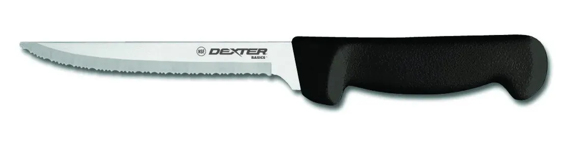 Introducing the Dexter Russell, 31627B, Utility Knife a must-have tool for achieving top-notch performance in any commercial restaurant. This 6" scalloped utility knife, with its black handle, is designed to meet the rigorous demands of a busy kitchen. Crafted by Dexter Russell, a trusted name in the industry, this knife offers exceptional quality and durability. The scalloped edge allows for precise cutting, making it perfect for slicing through a variety of ingredients with ease. Whether you're preparing vegetables, meats, or bread, this utility knife will deliver consistent results every time. Its ergonomic handle provides a comfortable grip, reducing fatigue during long hours of use. Upgrade your kitchen arsenal with the Dexter Russell, 31627B, Utility Knife and experience the difference it makes in your restaurant's efficiency and culinary creations.