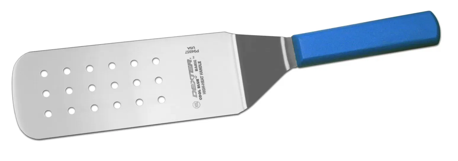 Invest in success with quality tools. The Dexter Russell, 31647H Turner is a must-have for any commercial restaurant. This high-heat, 8" x 3" perforated cake turner is designed to handle the demands of a busy kitchen. Its durable construction ensures long-lasting performance, while the perforated design allows for easy drainage of excess liquids, making it perfect for flipping delicate pastries or transferring fried foods. Whether you're a professional chef or a home cook looking to elevate your culinary skills, the Dexter Russell, 31647H Turner is a versatile tool that will help you achieve perfect results every time. Upgrade your kitchen arsenal with this essential turner and experience the difference in quality and performance.