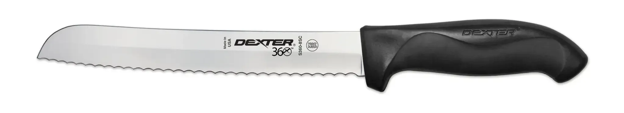 Upgrade your cooking space with the Dexter Russell, 36007 Knife. This top-of-the-line knife is a must-have for any commercial restaurant. With its 8" scalloped bread knife and black handle, it combines style and functionality. The knife is designed to effortlessly slice through bread, ensuring clean and precise cuts every time. Its scalloped edge prevents tearing and crushing, making it perfect for delicate pastries and crusty loaves. Its superior quality and durability make it ideal for high-volume use in a busy restaurant kitchen. Invest in this essential tool and elevate your culinary creations to new heights. Order the Dexter Russell, 36007 Knife today and experience the difference it makes in your restaurant's efficiency and presentation.
