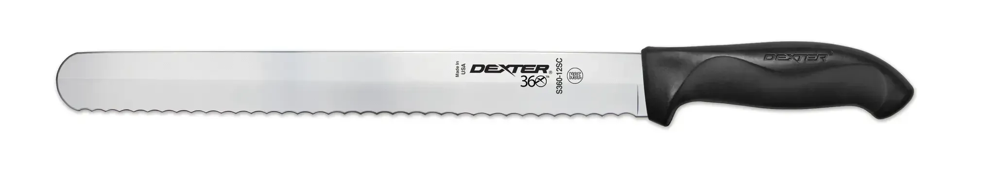 Enhance dining with precision tools using the Dexter Russell, 36011, Slicer. This professional-grade slicer is a must-have for any commercial restaurant. With its 12" scalloped blade and black handle, it offers both style and functionality. The scalloped edge allows for effortless slicing of meats, cheeses, and vegetables, ensuring consistent and precise cuts every time. The ergonomic handle provides a comfortable grip, reducing fatigue during extended use. Designed by Dexter Russell, a trusted name in the industry, this slicer is built to withstand the demands of a busy kitchen. Whether you're slicing deli meats for sandwiches or creating beautiful charcuterie boards, the Dexter Russell, 36011, Slicer is the perfect tool to elevate your culinary creations.