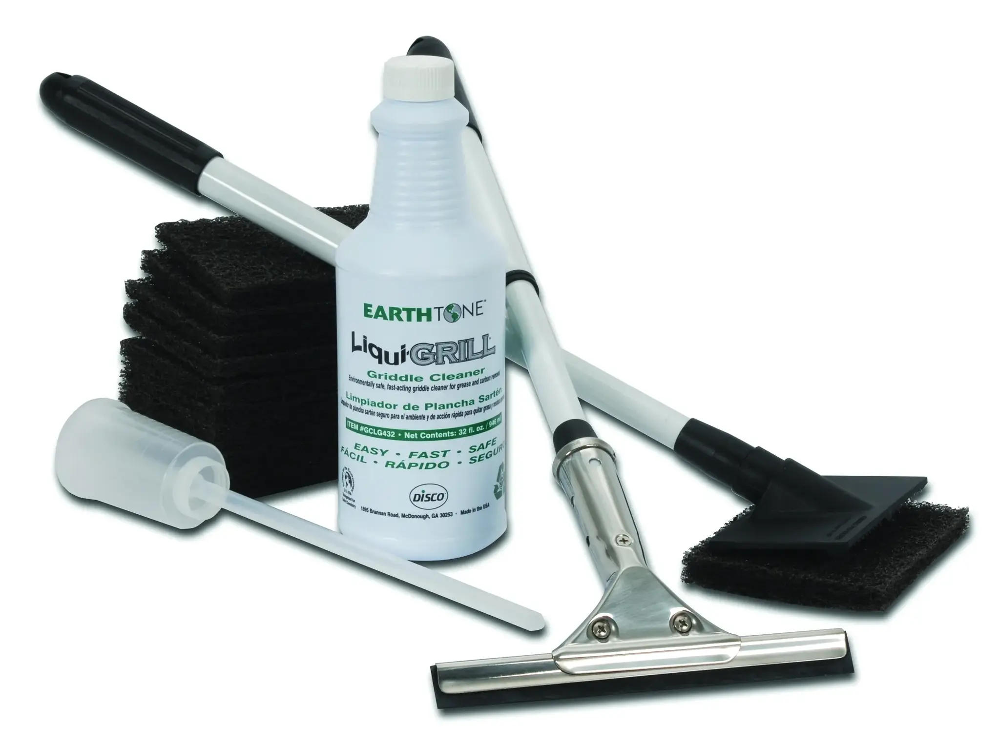 Elevate your kitchen's cleanliness and efficiency with the LIQUI-GRILL Griddle Cleaning Starter Kit from Disco Cellucap. It's the perfect solution for maintaining a spotless and hygienic cooking environment, ensuring your restaurant continues to deliver exceptional dining experiences.