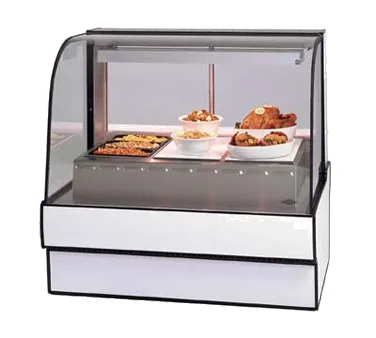 Introducing the Federal Industries CG7748HD Display Case, Heated Deli, Floor Model. This versatile presentation solution is designed to meet the needs of commercial restaurants, offering a range of features that enhance both functionality and aesthetics. With its curved glass design and tempered glass ends, this hot deli case provides an attractive display for your delicious offerings. The five independently controlled stainless steel heating wells, each equipped with a calrod heating element, ensure precise temperature control for your food items. The top-mounted full-length infrared heater and forced air front-glass defogger guarantee optimal visibility and prevent condensation. The glass sliding rear doors with moisture vents make it easy to access and serve your products while maintaining their freshness. The removable wrapping board adds convenience during food preparation. With its durable stainless steel deck and choice of laminate, this display case is built to withstand continuous use in a busy restaurant environment. Trust Federal Industries for reliable and efficient presentation solutions.