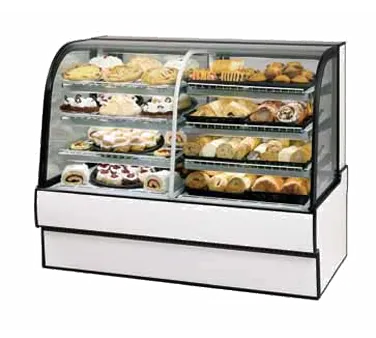 Uncover wonders with culinary elegance using the Federal Industries CGR5942DZ Display Case. This curved glass vertical dual zone bakery case is designed for commercial restaurant use, offering both refrigerated and non-refrigerated sections. With a spacious 59"W x 35"D x 42"H size, this display case provides ample room to showcase your delectable creations. The self-contained refrigeration system with a condensate evaporator ensures optimal temperature control, while the curved thermopane tilt-front glass and LED top light beautifully highlight your products. The two tiers of adjustable white wire shelves and glass sliding rear doors make it easy to arrange and access your items. The tempered glass ends add durability, and the choice of laminate with black trim allows you to customize the look to match your restaurant's aesthetic. Elevate your culinary offerings and entice customers with the Federal Industries CGR5942DZ Display Case. Savor diverse culinary experiences with this exceptional display case.