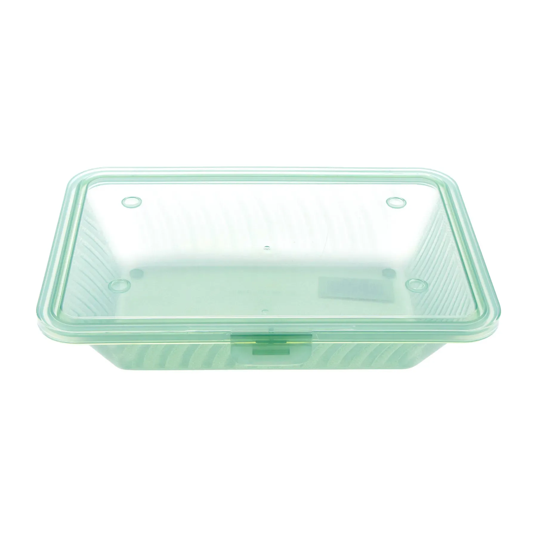 Unleash the full potential of your space with our Half Size Polypropylene Jade Flat Top Food Reusable Container from GET Enterprises. This versatile container, known as the G.E.T. Eco-Takeouts, is designed to meet the rigorous demands of a bustling restaurant environment. Measuring 9 inches in length, 6.5 inches in width, and 2 inches in height, it offers ample space for a variety of food items while maintaining a compact footprint.