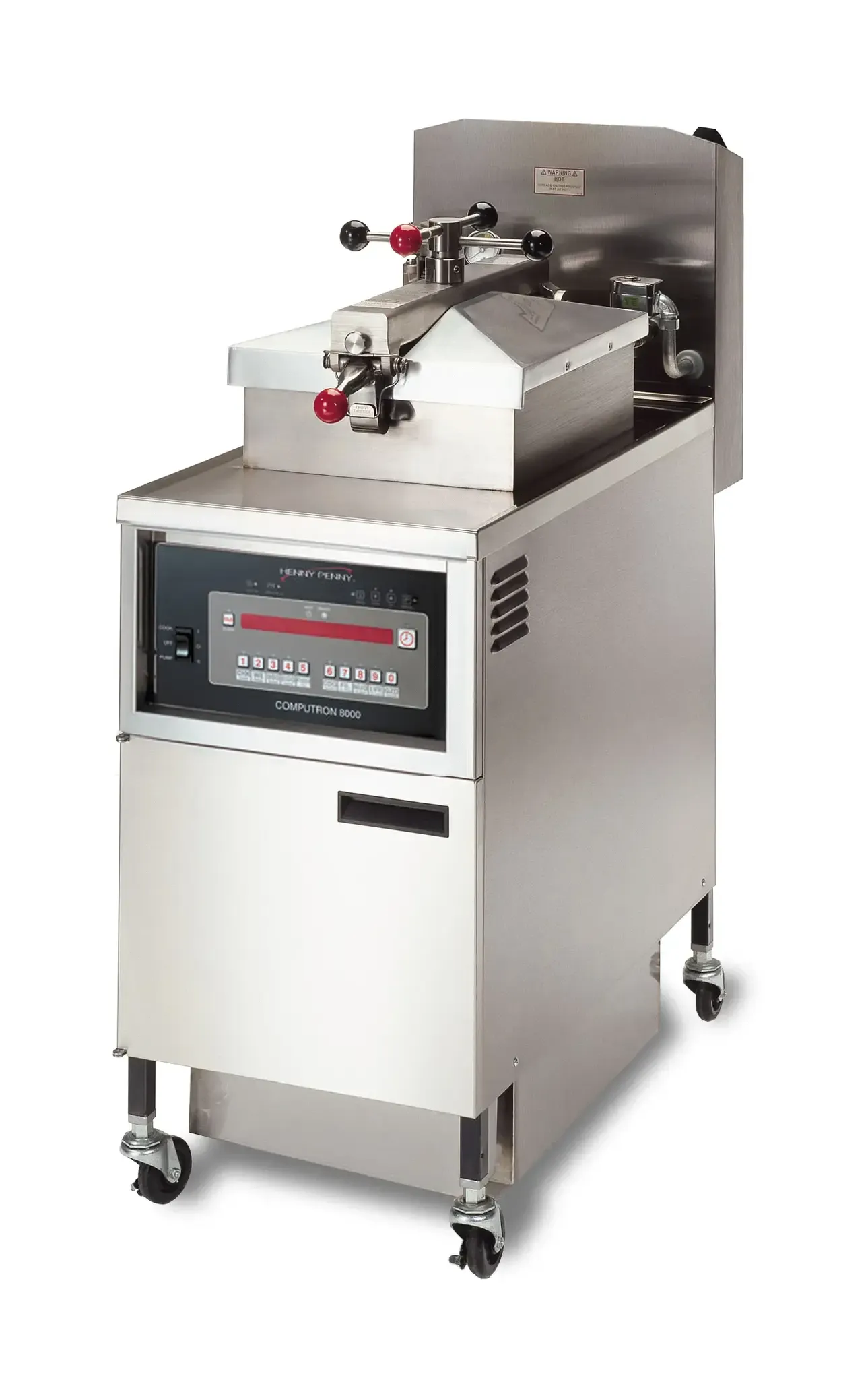 Frying under pressure enables lower cooking temperatures for longer oil life, and faster cooking times to meet peak demand. The PFE-500 electric pressure fryer's fast recovery translates into higher throughput, lower energy costs and longer frying oil life. Henny Penny pressure fryers have a patented lid lock and color-keyed spindle that make it easy to create a perfect pressure seal every time. A built-in filtration system filters and returns hot frying oil in minutes. No separate pumps and pans, no handling hot oil. The Computron™ 8000 control offers programmability in a simple, easy to use digital control panel with LED display.