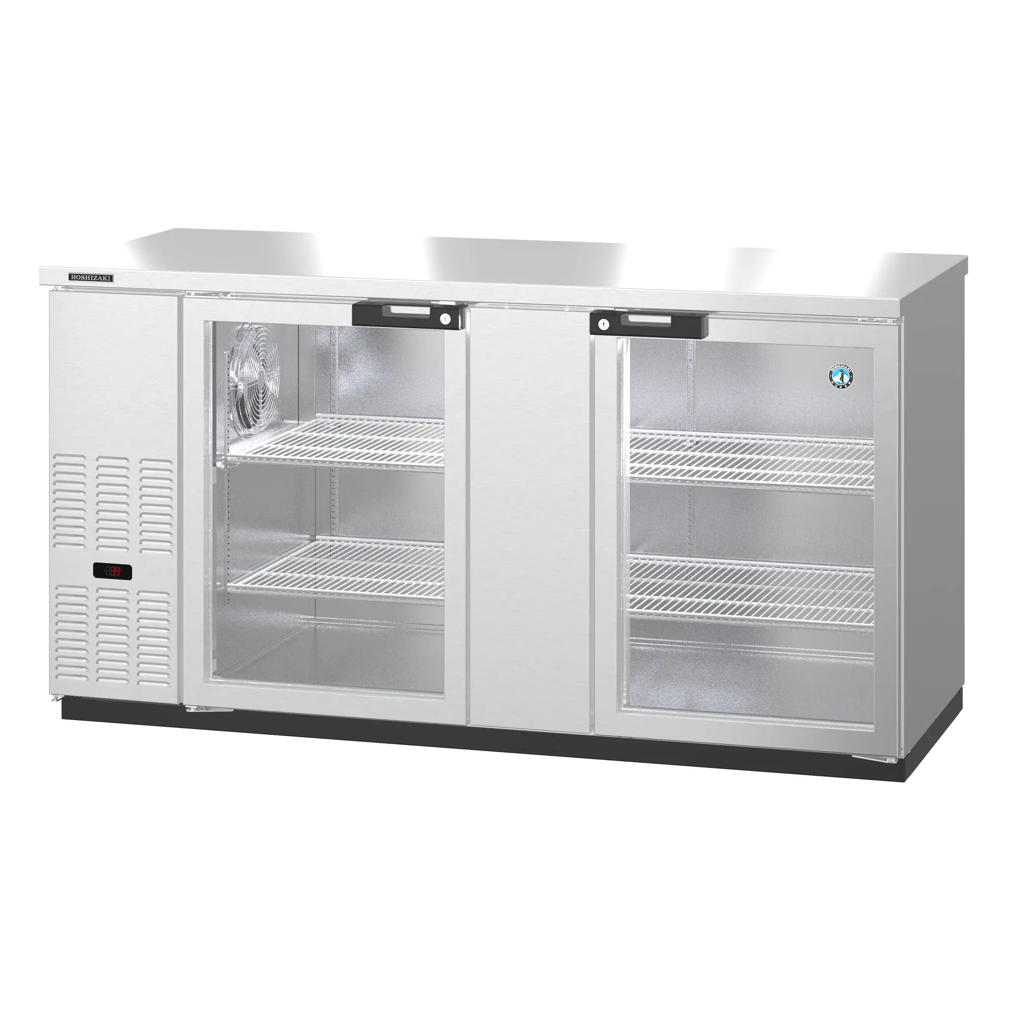 The BB69-G-S Back Bar Back Bar is a Two Section Refrigerator with a glass door that has all the right features. It boasts an impressive net capacity of 22.14 cubic feet, approx. (1014) 12oz. cans. The durable 1/3 HP motor that powers the compressor at the side of this unit that distributes air from left to right rather than from back to front. Side to side circular airflow ensures ice-cold products even when doors are opened regularly. Engineered to maintain food safe temperatures in +100°F kitchens. Plus the self-closing glass doors come standard with barrel locks.