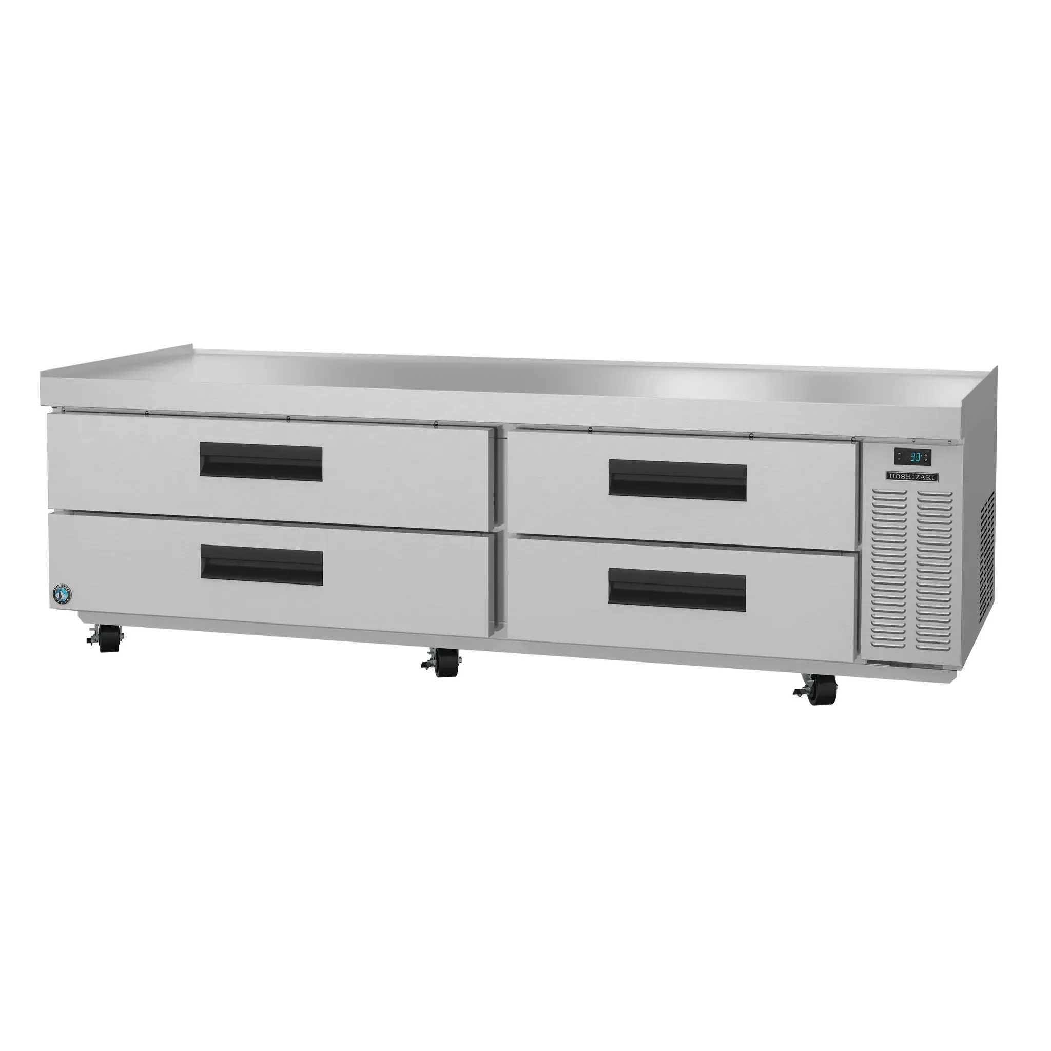 The CR85A two section refrigerated Chef Base makes it easy to increase productivity by keeping your refrigerated ingredients and cooking equipment in one, convenient location. The 26" high work surface, supports up to 1200 lbs. of equipment and includes 4 stainless steel drawers. Each drawer accommodates Left: (3) 12" x 20" x 6" deep pan & Right: (2) 12" x 20" x 6" deep pan (sold separately). The dependable 1/5 HP compressor motor distributes air evenly throughout the drawers and around the food product in the pans.