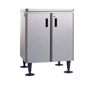 The SD-500 Icemaker/Dispenser Stand with Lockable Stainless Steel doors. This equipment stand for the DCM-300 & 500 Series icemaker\dispensers, features a corrosion resistant stainless steel exterior and a cabinet base with locking doors.