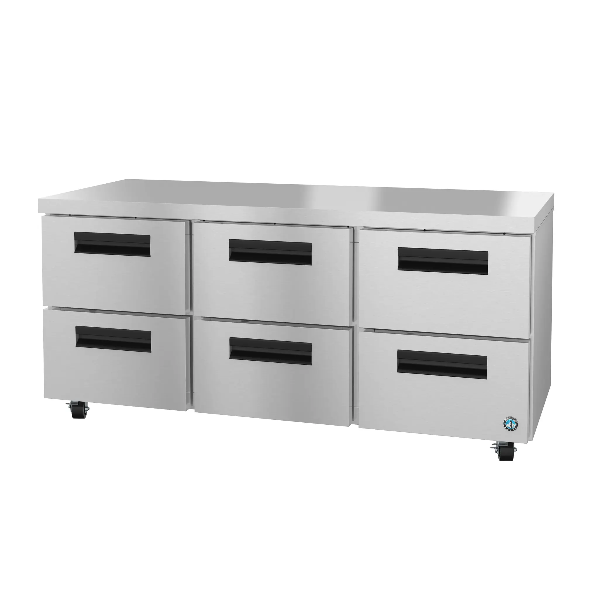 The UR72B-D6 Steelheart Series Undercounter three section refrigerator with stainless drawers is a space saving workhorse. Engineered to maintain food safe temperatures in 100°F ambient conditions. With a net capacity of 18 cubic feet this efficient undercounter refrigerator and front air flow design is perfect for hot/tight kitchens. The UR72B-D6 is constructed of stainless steel, which protects this unit from accidental damage and rust. Plus, it is easy to clean.