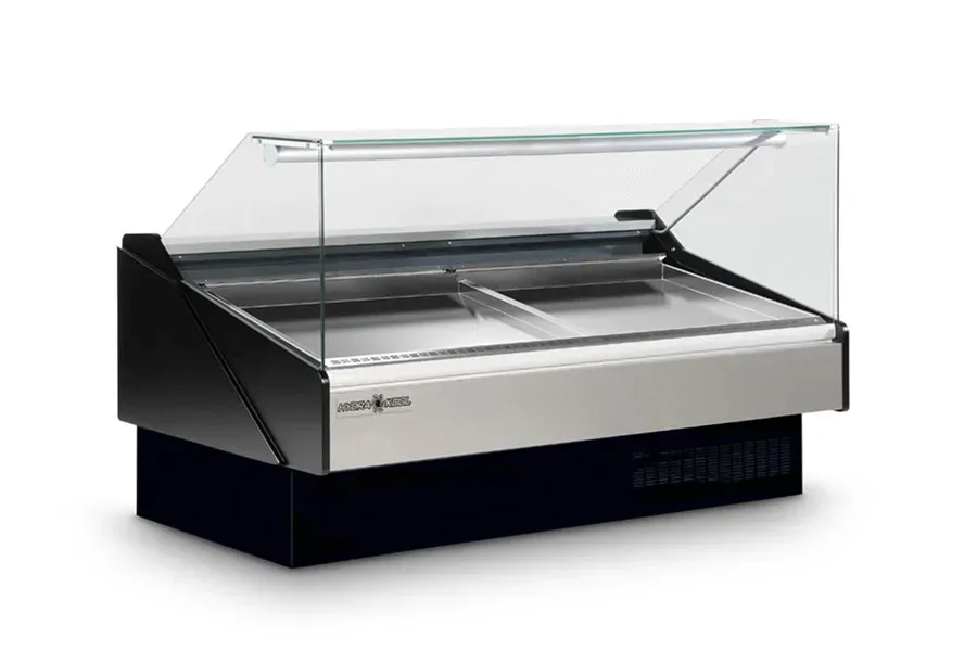 Optimize efficiency with a clever solution through the MVP KFM-SF-50-R Display Case. Designed specifically for commercial restaurant use, this display case is perfect for showcasing and preserving fresh seafood and poultry. With its multiplexible service type, you can easily adapt the case to meet your specific needs. The flat front tempered glass and tempered glass sides provide a clear view of the products, while the rear tempered sliding glass doors allow for easy access. The LED interior lighting ensures that your products are beautifully illuminated, attracting customers' attention. The digital controller allows for precise temperature control, ensuring that your seafood and poultry stay fresh and safe. The PVC coated steel exterior is durable and easy to clean, making maintenance a breeze. With adjustable feet and a remote refrigeration design, this display case is versatile and convenient. Trust MVP for high-quality, reliable restaurant equipment.