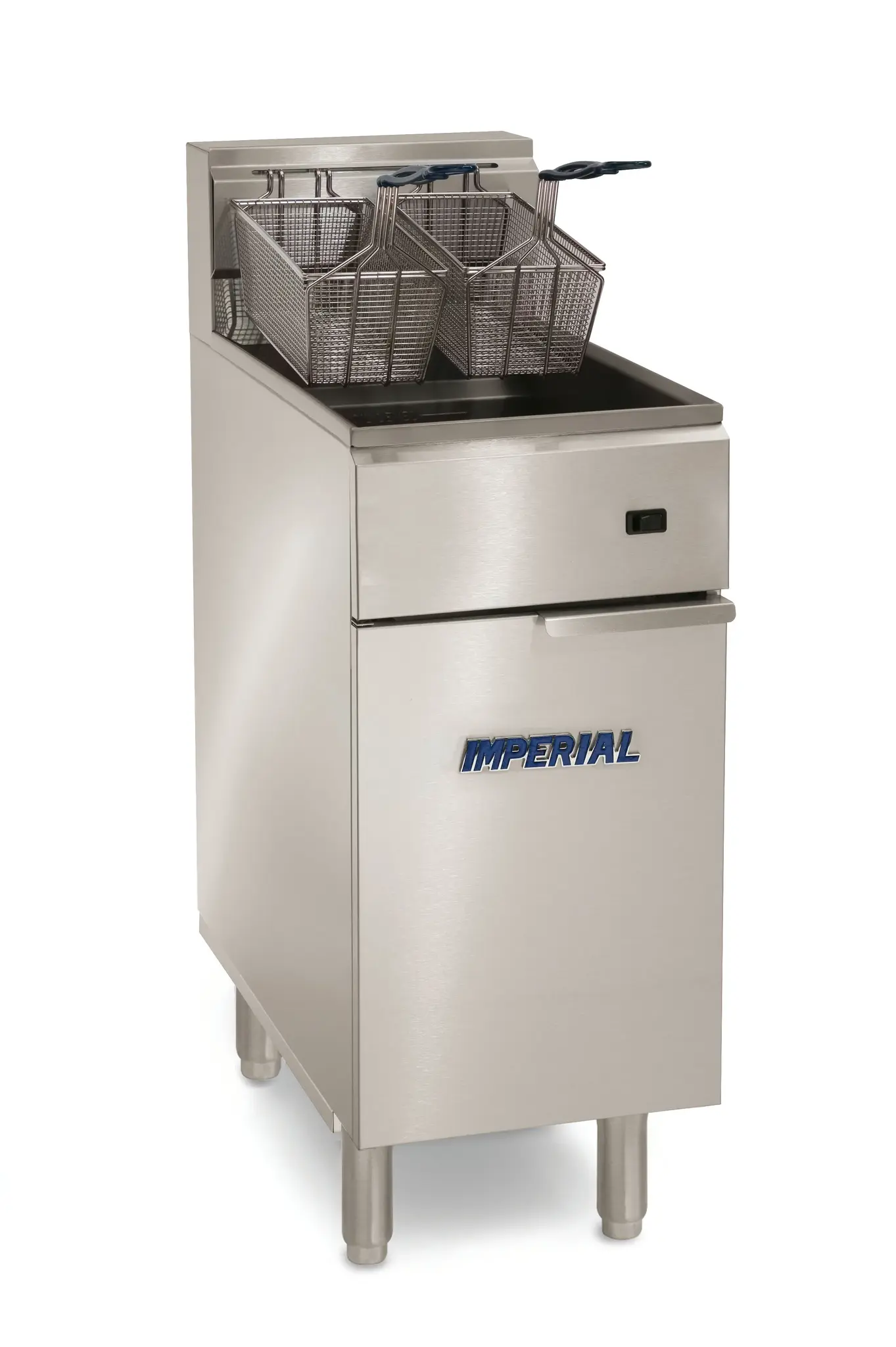 Streamline your restaurant cooking operations with the Imperial, IFS-50-E Electric Fryer. This floor model fryer is designed to handle the demands of a busy commercial kitchen. With a 50lb. fat capacity and immersed electrical elements, this fryer ensures efficient and consistent frying results. The snap action thermostat allows for precise temperature control, while the included wire mesh crumb screen and two nickel-plated baskets make cleaning and frying multiple items a breeze. The stainless steel construction of the front, door, sides, basket hanger, and frypot ensures durability and easy maintenance. The fryer also comes with 6" legs for stability and mobility. With a power output of 15.25 kW, this fryer is cETLus, CSA-Sanitation, and CE certified, guaranteeing its safety and reliability. Upgrade your kitchen with the Imperial, IFS-50-E Electric Fryer and experience enhanced efficiency and productivity.