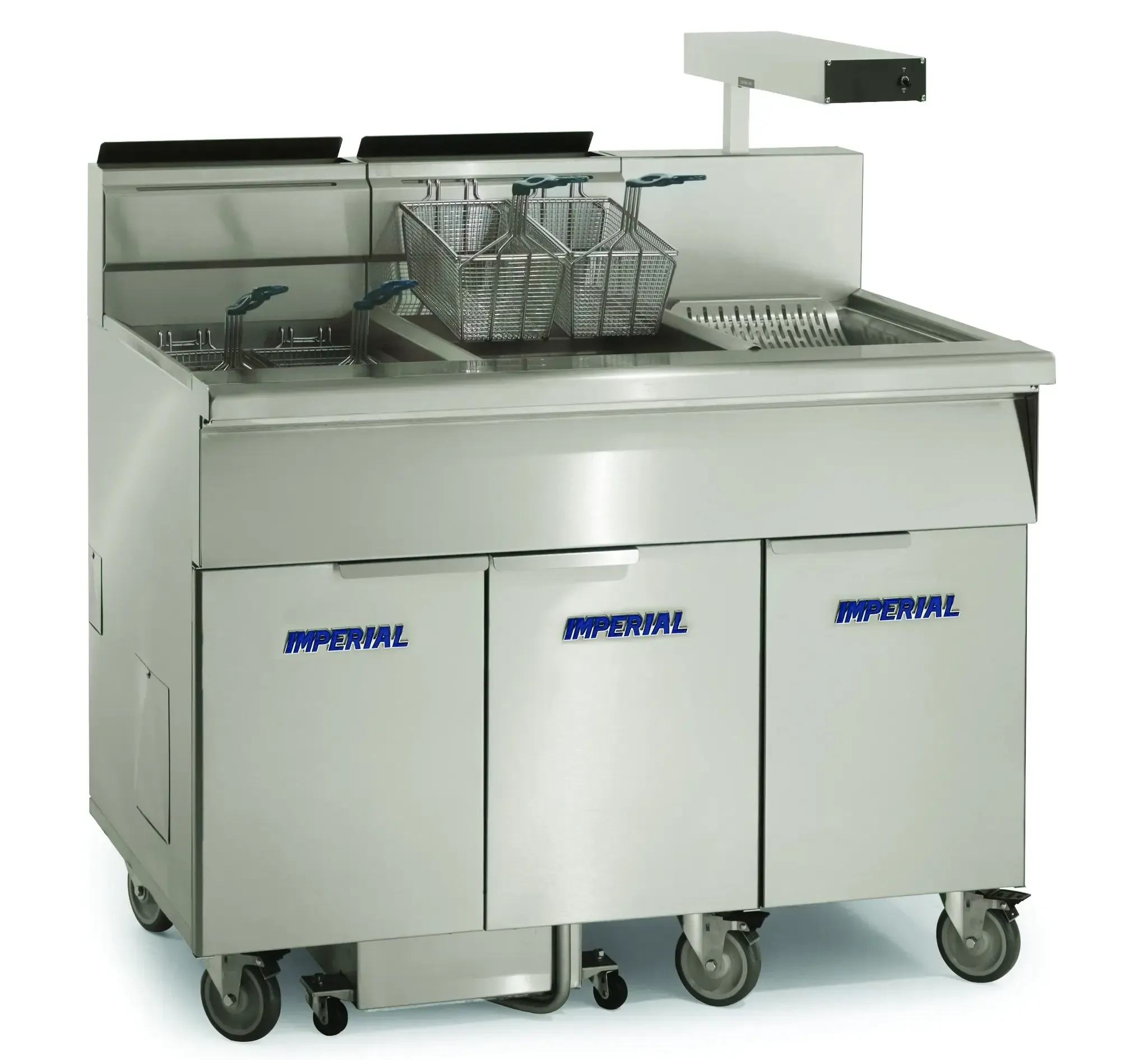 Serve with pride with the Imperial, IFSCB175ET Fryer, Electric, Floor Model, Full Pot. This top-of-the-line fryer is designed to meet the demands of a busy commercial restaurant. With a 75 lb. capacity and immersed elements, it can handle high-volume frying with ease. The built-in filter system and dump station make oil maintenance a breeze, ensuring consistent, delicious results every time. The 5.5 GPM roller pump and electronic thermostat provide precise control over cooking temperatures, while the stainless steel frypot, front, and sides ensure durability and easy cleaning. The included food warmer, dump pan, joiner strips, and filter starter kit add convenience and efficiency to your kitchen operations. With its cETLus, CSA Flame, CSA Star, CSA-Sanitation, and CE certifications, you can trust the Imperial, IFSCB175ET Fryer to deliver exceptional performance and safety. Upgrade your restaurant's frying capabilities with this reliable and versatile fryer.