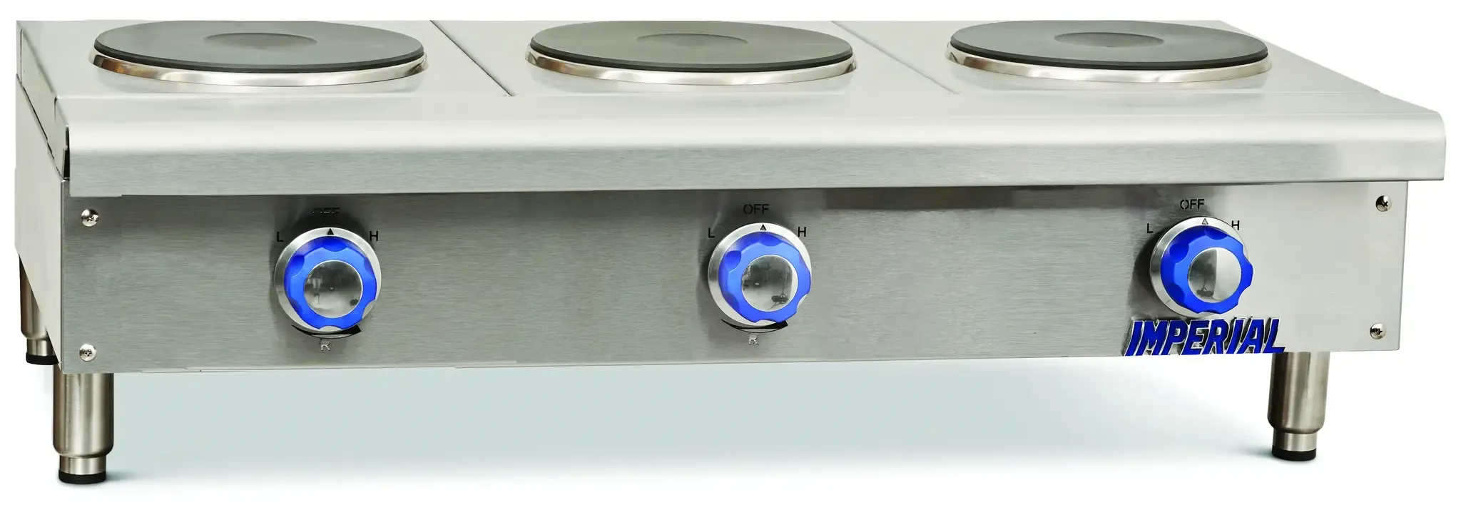 Introducing the Imperial, IHPA-3-36-E Hotplate, Countertop, Electric - the perfect addition to drive restaurant profitability. This electric hotplate is designed to meet the demands of a commercial restaurant setting, ensuring efficiency and reliability. With its three round plate elements and solid top, this hotplate provides ample cooking space for preparing multiple dishes simultaneously. The infinite controls allow for precise temperature adjustments, giving chefs full control over their culinary creations. Made with a stainless steel front, top, and sides, this hotplate is not only durable but also easy to clean, maintaining a hygienic kitchen environment. The adjustable feet ensure stability on any countertop surface. Certified by cETLus, ETL-Sanitation, and CE, this hotplate meets the highest safety and sanitation standards. Enhance your restaurant's productivity and culinary capabilities with the Imperial, IHPA-3-36-E Hotplate, Countertop, Electric.
