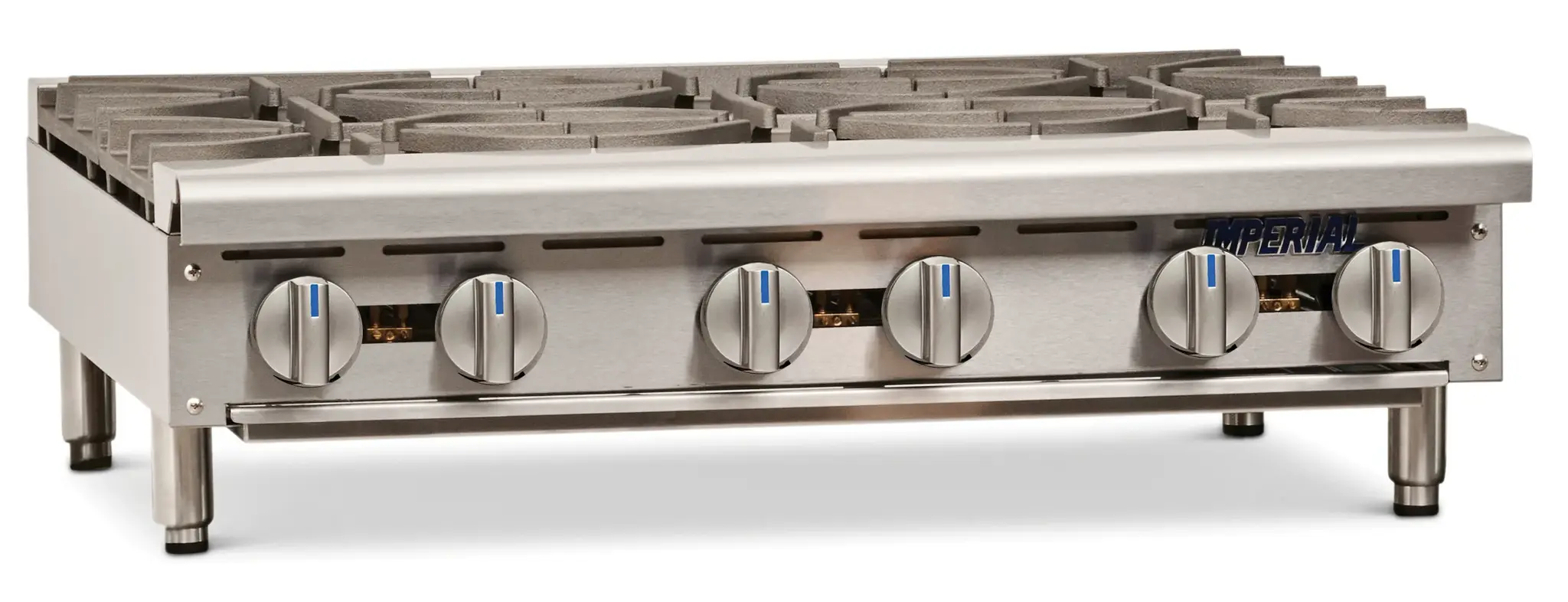 Take your kitchen to the next level with the Imperial IHPA-6-36 Hotplate. This gas countertop hotplate is designed to meet the demands of a commercial restaurant kitchen. With six open burners and cast iron grates, this hotplate provides exceptional heat distribution and durability. The removable crumb tray makes cleaning a breeze, ensuring a clean and sanitary cooking surface at all times. The stainless steel front, sides, and landing ledge not only add a sleek and professional look to your kitchen but also provide long-lasting durability. The adjustable feet allow for easy installation and leveling on any countertop. With a powerful 192,000 BTU output, this hotplate delivers the heat needed to cook a variety of dishes quickly and efficiently. It is CSA Flame, CSA Star, NSF, and CE certified, guaranteeing its safety and quality. Upgrade your kitchen with the Imperial IHPA-6-36 Hotplate and experience enhanced cooking performance and efficiency.