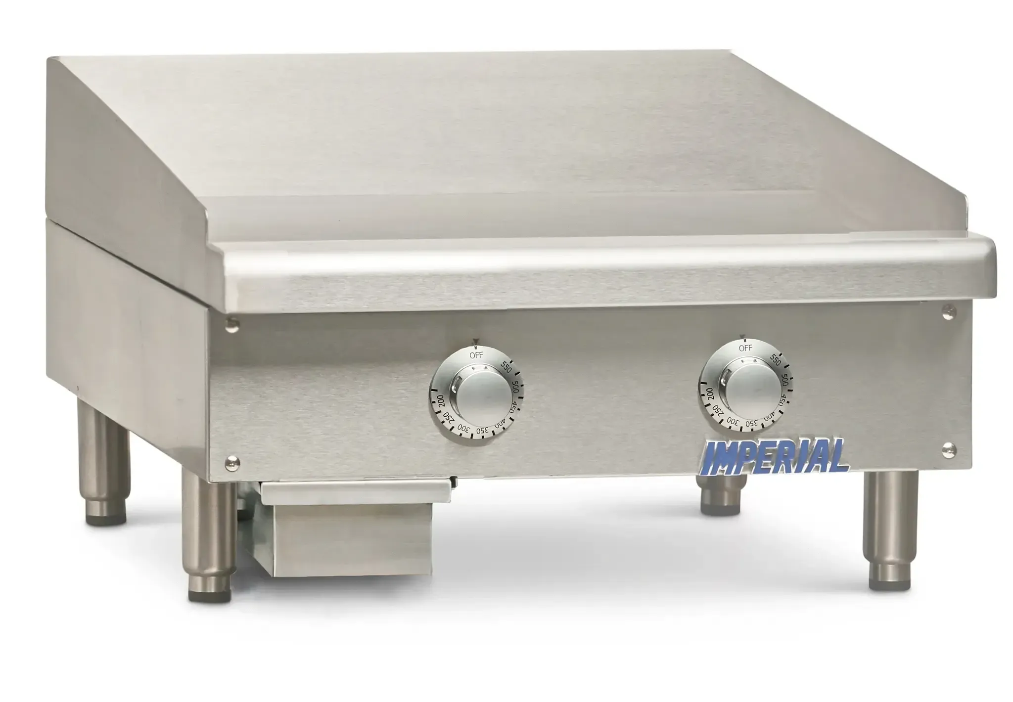 Enhance your commercial kitchen with the Imperial ITG-24-E Electric Countertop Griddle. This high-quality griddle is designed to meet the demands of a busy restaurant kitchen. With a 24" W x 24" D cooking surface and a 1/2" thick polished steel plate, this griddle provides even heat distribution and excellent heat retention. The thermostatic controls allow for precise temperature adjustments, ensuring perfect cooking results every time. The 4" wide grease trough and removable grease can make cleaning a breeze, while the stainless steel front, sides, splash guard, and ledge add durability and a sleek look to your kitchen. The 4" legs provide stability and make it easy to move the griddle around. Certified by cETLus, ETL-Sanitation, and CE, this Imperial griddle is a reliable and safe choice for any commercial restaurant. Upgrade your kitchen with the Imperial ITG-24-E Electric Countertop Griddle and experience superior cooking performance.