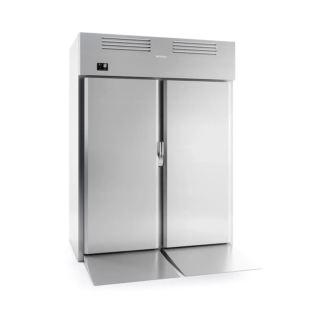 Optimize your refrigeration needs with Infrico's 2 Section Roll-in Refrigerator, accommodating carts within its 66-1/4" capacity. Featuring two doors, a 5/8 HP compressor, and drawing 12.3 Amps, this unit provides ample storage space with a temperature range of 33°F to 38°F.