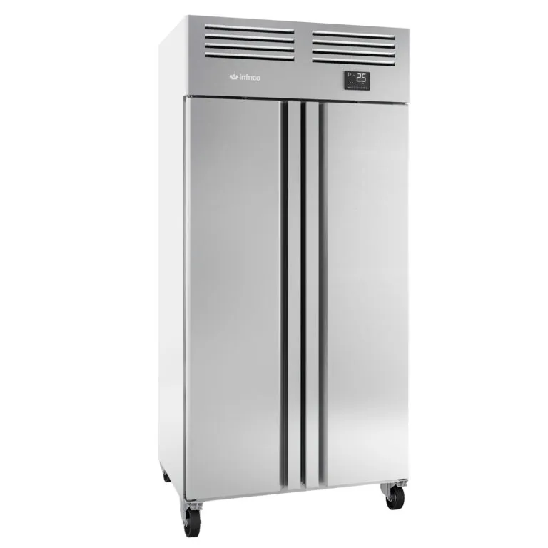 Combine refrigeration and freezing capabilities with Infrico's 2 Solid Door Dual Refrigerator & Freezer. This versatile unit features two doors, six shelves, and operates on a 1/3 HP refrigerator compressor and a 3/8 HP freezer compressor, drawing 8.08 Amps. With temperature options of 33°F to 38°F for the refrigerator and 0°F for the freezer, it offers flexibility for various storage needs.