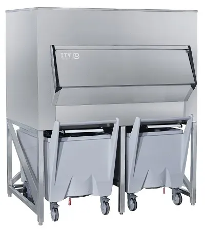 Step up your game with the ITV Ice Makers SCD-1400 Ice Bin, designed to meet the high demands of any bustling restaurant. With an impressive ice bin capacity of 1360.25 lbs and an Easy Cart that holds up to 247 lbs of ice, this product ensures you never run out of ice during peak hours. Constructed from AISI 304 stainless steel, the SCD-1400 is built to last, offering durability and resistance to wear and tear. The hard sanitary polyethylene one-piece liner is resistant to blows and scratches, ensuring your ice remains uncontaminated. The seamless one-piece liner with rounded corners facilitates easy cleaning, eliminating potential dirty points and making maintenance a breeze. The SCD-1400 features a sophisticated drainage system that collects and directs water to the drain, keeping both the bin and your restaurant floor clean and dry. The large capacity Easy Cart is ergonomic and easy to move with minimal effort, equipped with a braking and drainage system for added convenience. Made of sanitary polyethylene, the Easy Cart has a smooth surface that simplifies cleaning and includes a cover to prevent dirt from contaminating the ice. For added efficiency, optional baskets can be included to distribute ice quickly and effortlessly. Elevate your restaurant' s ice management with the ITV Ice Makers SCD-1400 Ice Bin, ensuring a seamless and hygienic ice supply for your establishment.