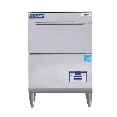 Maximize effectiveness with modern solutions using the Jackson WWS, DELTA HT-E-SEER-S Glasswasher. This high-temperature sanitizing door-type glasswasher is designed specifically for commercial restaurant use. With its built-in booster and Sani-Sure final rise system, you can ensure that your glassware is thoroughly sanitized and ready for use. The steam elimination and energy recovery system not only saves energy but also helps maintain a comfortable working environment. This glasswasher can handle approximately 20 racks or 720 glasses per hour, making it perfect for high-volume establishments. The digital LED control panel, universal timer, and auto-fill feature provide convenience and ease of use. The stainless steel construction ensures durability and longevity, while the cETLus, ETL-Sanitation, and ENERGY STAR certifications guarantee its quality and efficiency. Upgrade your restaurant's dishwashing capabilities with the Jackson WWS DELTA HT-E-SEER-S Glasswasher.