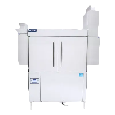 Revamp your kitchen effortlessly with modern solutions using the Jackson WWS RACKSTAR 44CE ENERGY RECOVERY Dishwasher. This conveyor-type dishwasher is designed specifically for commercial restaurant use, offering high temperature sanitization and energy recovery capabilities. With a single tank design and a capacity of approximately 223 racks per hour, this dishwasher ensures efficient and thorough cleaning while conserving water and energy. The fully automatic operation, including auto-fill and digital temperature readout, simplifies the dishwashing process, allowing your staff to focus on other tasks. The double-wall insulated doors and EnergyGuard controls enhance energy efficiency, while the stainless steel construction ensures durability and easy maintenance. The dishwasher also features Dual Rainbow Rinse options, adjustable damper, vent fan control, and splash shields for added convenience and safety. Upgrade your restaurant's dishwashing system with the Jackson WWS RACKSTAR 44CE ENERGY RECOVERY Dishwasher and experience improved efficiency and sustainability.