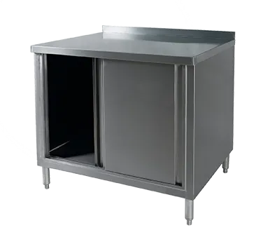 Simplify service with the smart choice of Klingers Trading BCB3036-W/SHELF Work Table. Designed for commercial restaurant use, this stainless steel work table with a cabinet base and sliding doors is a must-have for any busy kitchen. With dimensions of 36"W x 30"D x 38"H, it provides ample space for food preparation and storage. The 2"H rear up-turn and turned-down edges ensure a clean and safe working environment. The middle shelf adds extra storage capacity, while the 6" legs with adjustable bullet feet provide stability on any surface. This work table is not only durable and easy to clean but also enhances efficiency and organization in the kitchen. Whether you need a sturdy surface for chopping vegetables or a convenient storage solution for pots and pans, the Klingers Trading BCB3036-W/SHELF Work Table is the perfect addition to your commercial restaurant.
