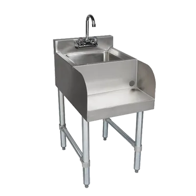 Upgrade workflow with innovative resource. Introducing the Klingers Trading, BS-1620, Underbar Blender Station. This free-standing blender station is designed to enhance efficiency in commercial restaurant settings. With its 18 gauge stainless steel top and galvanized legs, this station is built to withstand the demands of a busy kitchen. The 12" wide x 10" front-to-back x 6" deep dump sink, faucet, and drain basket are included, providing a convenient space for disposing of waste and cleaning utensils. The adjustable cross bracing ensures stability and durability, while the ETL-Sanitation certification guarantees the highest standards of cleanliness and safety. Whether you're blending smoothies, soups, or cocktails, this blender station is a must-have for any restaurant looking to streamline their operations. Trust Klingers Trading for quality and reliability. Upgrade your restaurant's workflow today with the BS-1620 Underbar Blender Station.