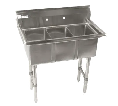 Optimize efficiency with smart solutions in your commercial restaurant with the Klingers Trading, CON3, Sink, (3) Three Compartment. This convenience/deli sink is designed to streamline your operations and enhance productivity. Made with durable 18/304 stainless steel construction, it ensures long-lasting performance in a busy kitchen environment. The sink features three spacious compartments, each measuring 10" wide x 14" front-to-back x 10" deep, providing ample space for washing, rinsing, and sanitizing dishes and utensils. The 8-1/2" backsplash and 8" OC splash mount faucet holes prevent water from splashing onto surrounding surfaces, maintaining a clean and safe workspace. With three 3-1/2" drain baskets included, you can easily dispose of food waste. The stainless steel legs, crossbracing, and feet provide stability and support, ensuring the sink remains sturdy during heavy use. Upgrade your restaurant's efficiency with the Klingers Trading, CON3, Sink, (3) Three Compartment.