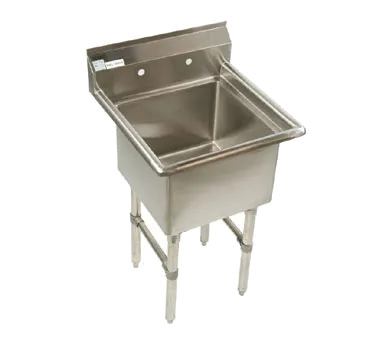Revamp service with versatile option! Upgrade your commercial restaurant with the Klingers Trading ECS12424 Sink. This one-compartment sink is designed to meet the demands of a busy kitchen. Made from durable 18/304 stainless steel, it ensures long-lasting performance and easy maintenance. The 24" x 24" x 12" deep compartment provides ample space for washing large pots, pans, and utensils. The 9" high backsplash and 8" O.C splash mount faucet holes prevent water from splashing onto the surrounding area, keeping your kitchen clean and safe. The stainless steel gussets, legs, crossbracing, and adjustable bullet feet provide stability and support. With ETL certification, you can trust the quality and safety of this sink. Upgrade your kitchen with the Klingers Trading ECS12424 Sink and experience improved efficiency and cleanliness in your commercial restaurant.