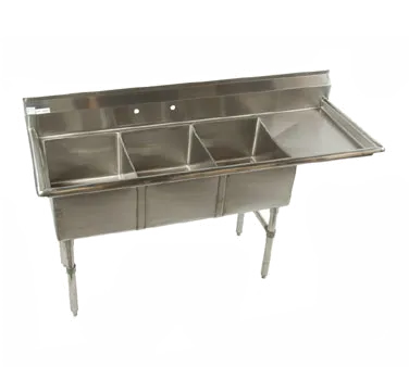 Constructed with durable stainless steel, this sink is built to withstand the demands of a busy restaurant environment. The three 15" x 15" x 11" deep compartments provide ample space for washing, rinsing, and sanitizing dishes, while the 8-1/2" backsplash helps to keep your walls clean and protected.