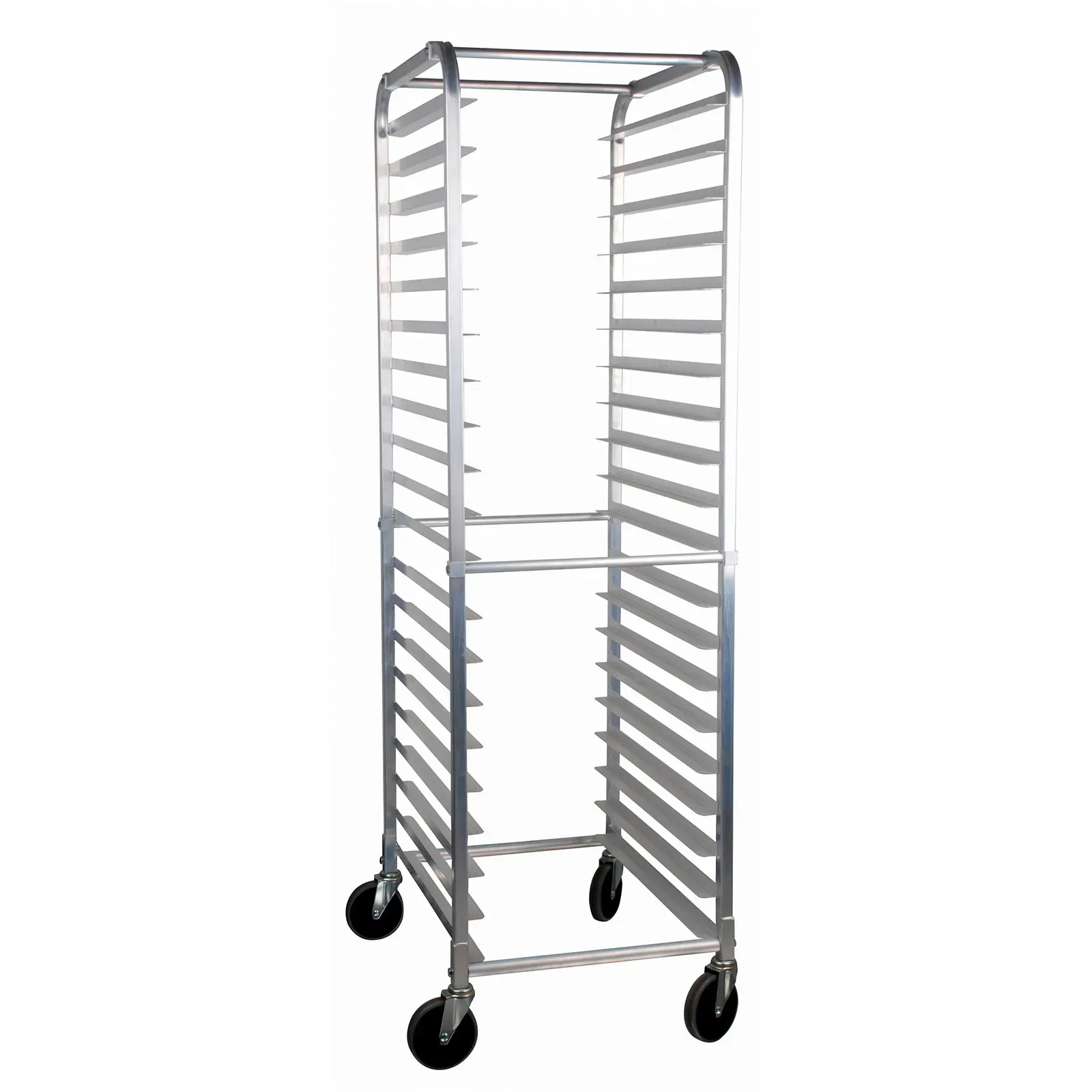 Elevate sustainability with practical alternative! Introducing the Klingers Trading PANRACK20 Pan Rack, Bun. This mobile, full-height sheet pan rack is designed for commercial restaurant use, offering convenience and efficiency. With open sides and the ability to accommodate 20 pans measuring 18" x 26", this rack maximizes storage space while ensuring easy access to your baked goods. The 18-gauge aluminum construction guarantees durability and longevity, making it a reliable investment for your kitchen. Equipped with four 5" polyurethane casters, this rack is easy to maneuver, allowing for seamless transportation of your baked creations. The slides on 3" centers provide stability and prevent pans from sliding or tipping over. NSF certified and KD (knocked down) for easy assembly, this pan rack meets industry standards and is a must-have for any commercial restaurant looking to optimize storage space and streamline operations. Trust Klingers Trading for quality and functionality.