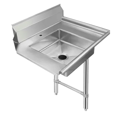 Revamp service with versatile option! Upgrade your commercial restaurant with the Klingers Trading SDT36R Soiled Dishtable. This top-of-the-line dishtable is designed for right-to-left operation, making it perfect for busy kitchen environments. The 16/304 stainless steel top ensures durability and easy cleaning, while the 9-inch backsplash provides added protection against spills and splashes. The dishtable also features a 20" x 20" pre-rinse sink with a single faucet hole, allowing for efficient dishwashing and food preparation. With stainless steel legs and crossrails, this dishtable is built to withstand the demands of a commercial kitchen. Plus, it is ETL-Sanitation certified, ensuring the highest standards of cleanliness and hygiene. Whether you're running a bustling restaurant or a busy catering service, the Klingers Trading SDT36R Soiled Dishtable is the perfect addition to streamline your operations and enhance your service.