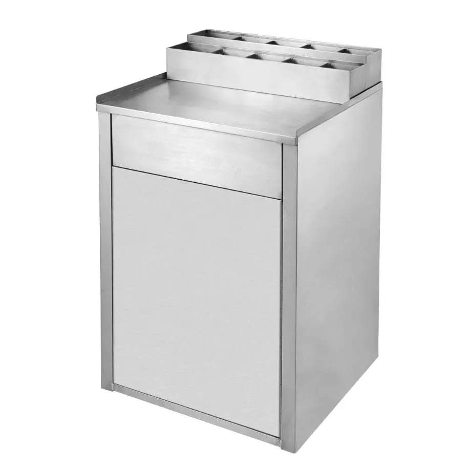 Equip for sustainability with Klingers Trading WR2000 Trash Receptacle, Cabinet Style. This stainless steel waste receptacle is designed to meet the demands of a commercial restaurant setting. With a generous 35-gallon capacity, it can handle the high volume of waste produced in busy kitchens. The 24"W x 26"L x 41"H dimensions ensure it fits seamlessly into any space, while the optional organizer (sold separately) adds convenience and efficiency. Made with durable stainless steel construction, this trash receptacle is built to withstand the rigors of a bustling restaurant environment. Klingers Trading, a trusted name in the industry, offers this versatile solution to help you maintain cleanliness and organization in your establishment. Choose the Klingers Trading WR2000 Trash Receptacle, Cabinet Style, and elevate your restaurant's waste management system to new heights of efficiency and sustainability.