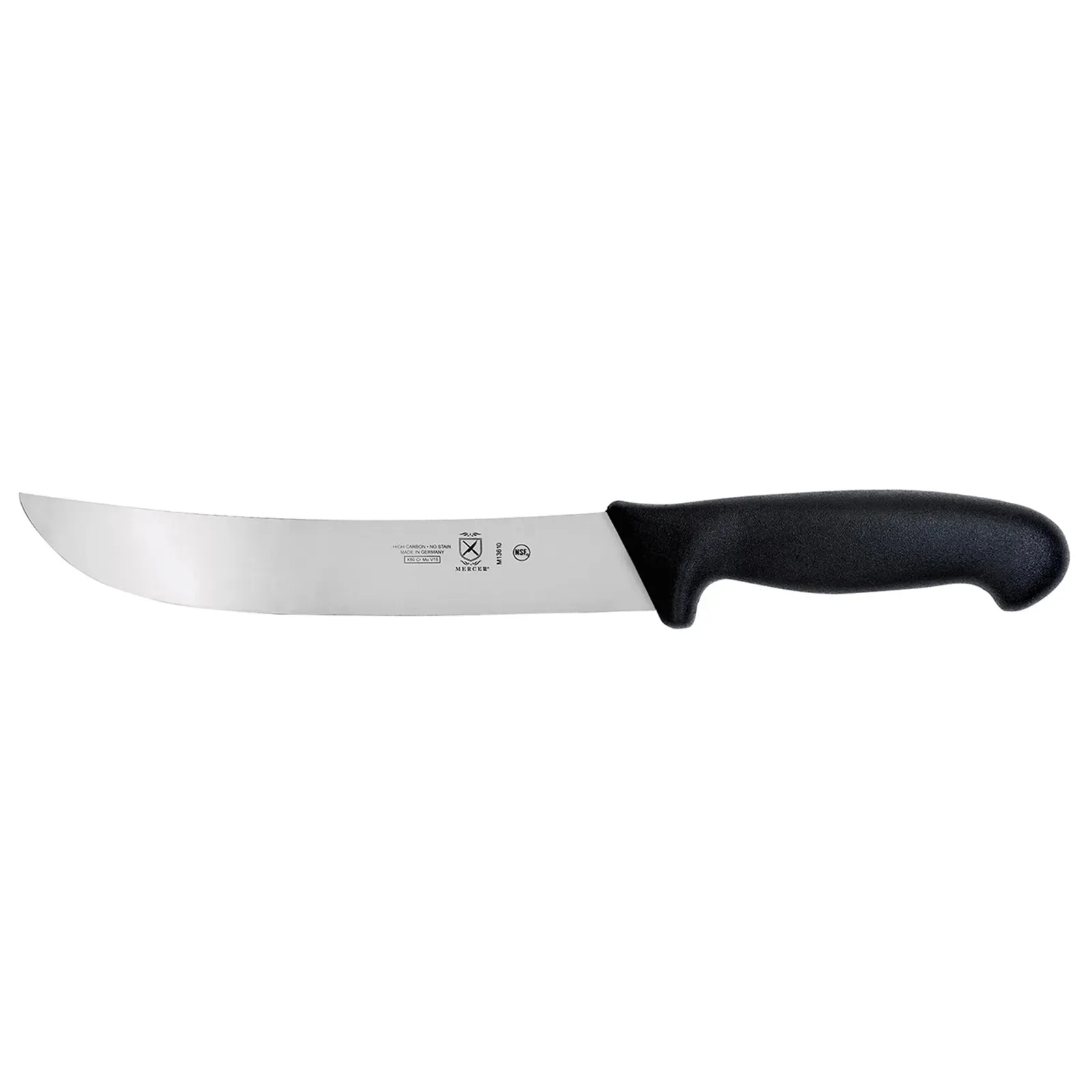 Boost kitchen experiences with the Mercer Culinary, M13610, Knife, Cimeter. This 10" cimeter knife is a must-have tool for any commercial restaurant. Crafted by Mercer Culinary, a trusted name in the industry, this knife is designed to enhance efficiency and precision in the kitchen. The curved, stamped blade is made from high carbon, stain-resistant German steel, ensuring durability and long-lasting performance. The polypropylene handle provides a comfortable grip, allowing chefs to work with ease for extended periods. With NSF certification, this knife meets the highest standards of safety and sanitation. Whether you're slicing through large cuts of meat or trimming fat, the Mercer Culinary Cimeter Knife delivers exceptional control and accuracy. Upgrade your culinary arsenal with the Mercer Culinary, M13610, Knife, Cimeter.