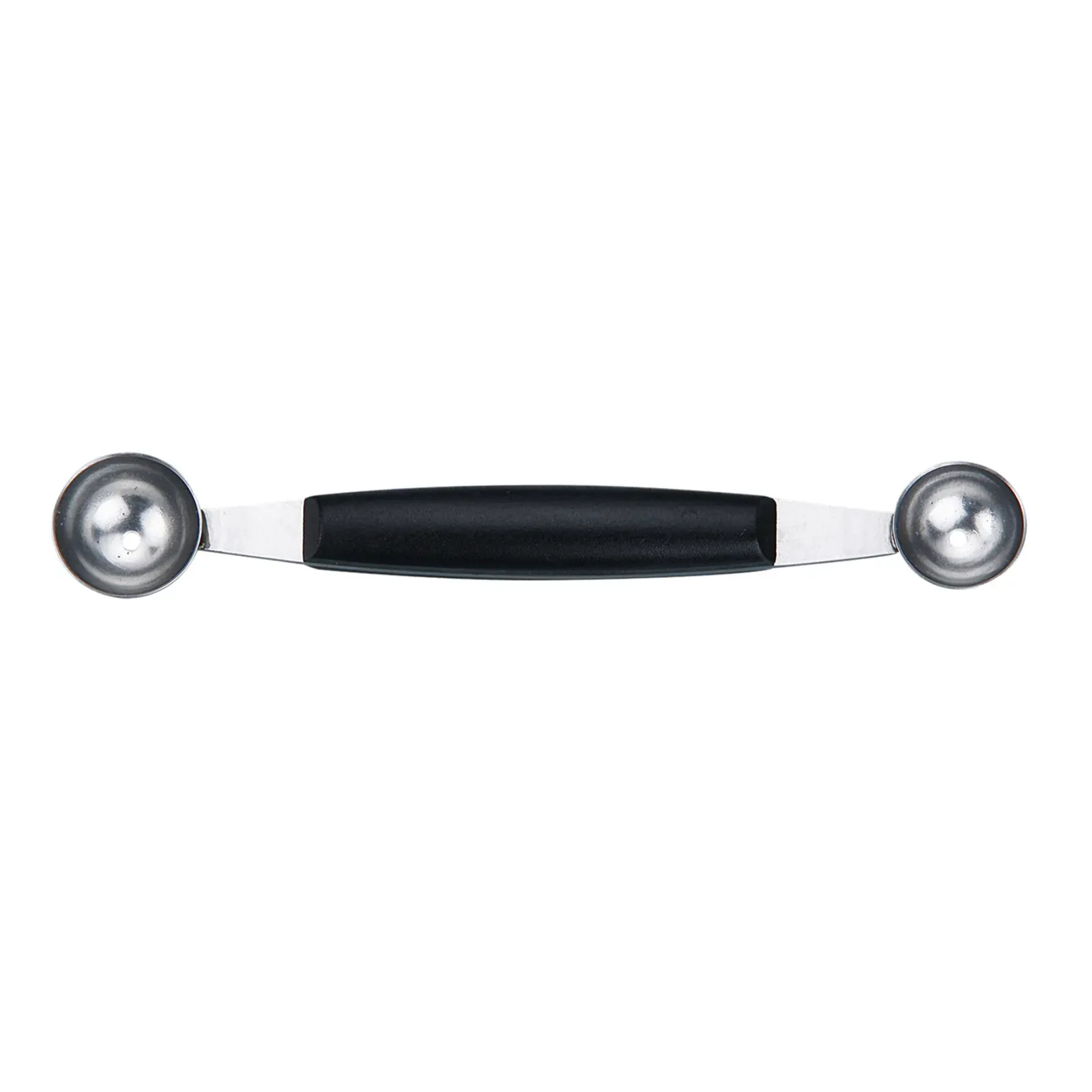 Maximize kitchen productivity with the Mercer Culinary, M15100 Melon Baller. This double melon baller is a must-have tool for any commercial restaurant. With two different sizes, 7/8" and 1", you can create perfectly shaped melon balls for salads, desserts, and more. The molded stain-resistant steel construction ensures durability and longevity, even with frequent use in a busy kitchen. The slip-resistant polypropylene handle provides a comfortable grip, allowing for precise and effortless scooping. Whether you're serving fruit platters or adding a decorative touch to your dishes, this Mercer Culinary melon baller is the ideal tool for achieving professional results. Elevate your culinary creations and impress your customers with perfectly formed melon balls every time.
