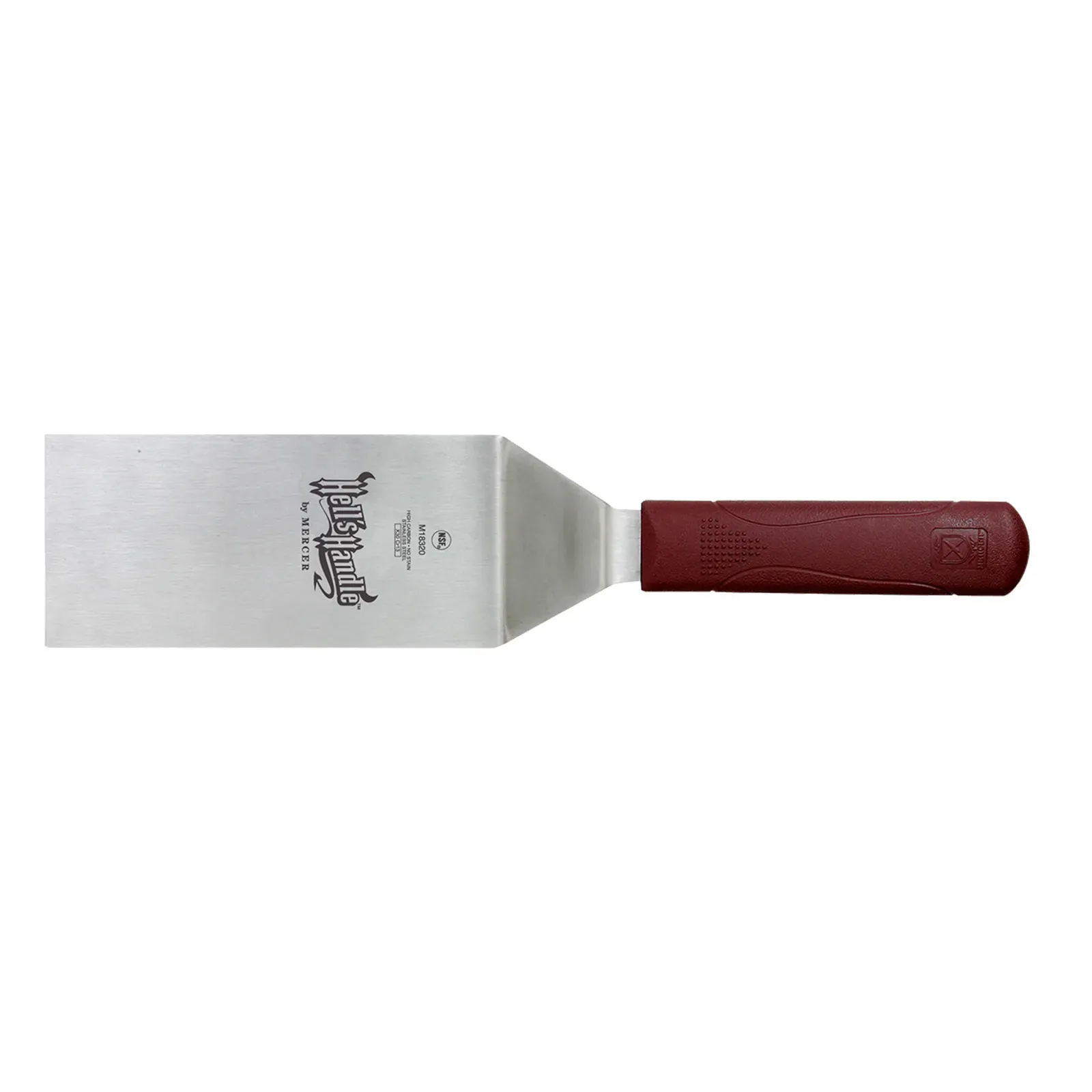 Boost culinary experiences with the Mercer Culinary, M18320, Turner, Solid, Stainless Steel. This 6" x 3" Square Edge Turner is a must-have tool for any commercial restaurant. Its precision ground, Japanese stainless steel blade ensures durability and sharpness, allowing for effortless flipping and turning of food. The 13-1/2" overall length provides the perfect balance between control and reach. The square edge design allows for easy maneuvering under delicate items like fish fillets or omelets. With a heat resistance of up to 450F, this turner can handle high-temperature tasks without warping or melting. The dual-textured finish on the handle provides extra grip and slip resistance, ensuring safety and comfort during use. NSF certified, this turner meets the highest standards of quality and hygiene.