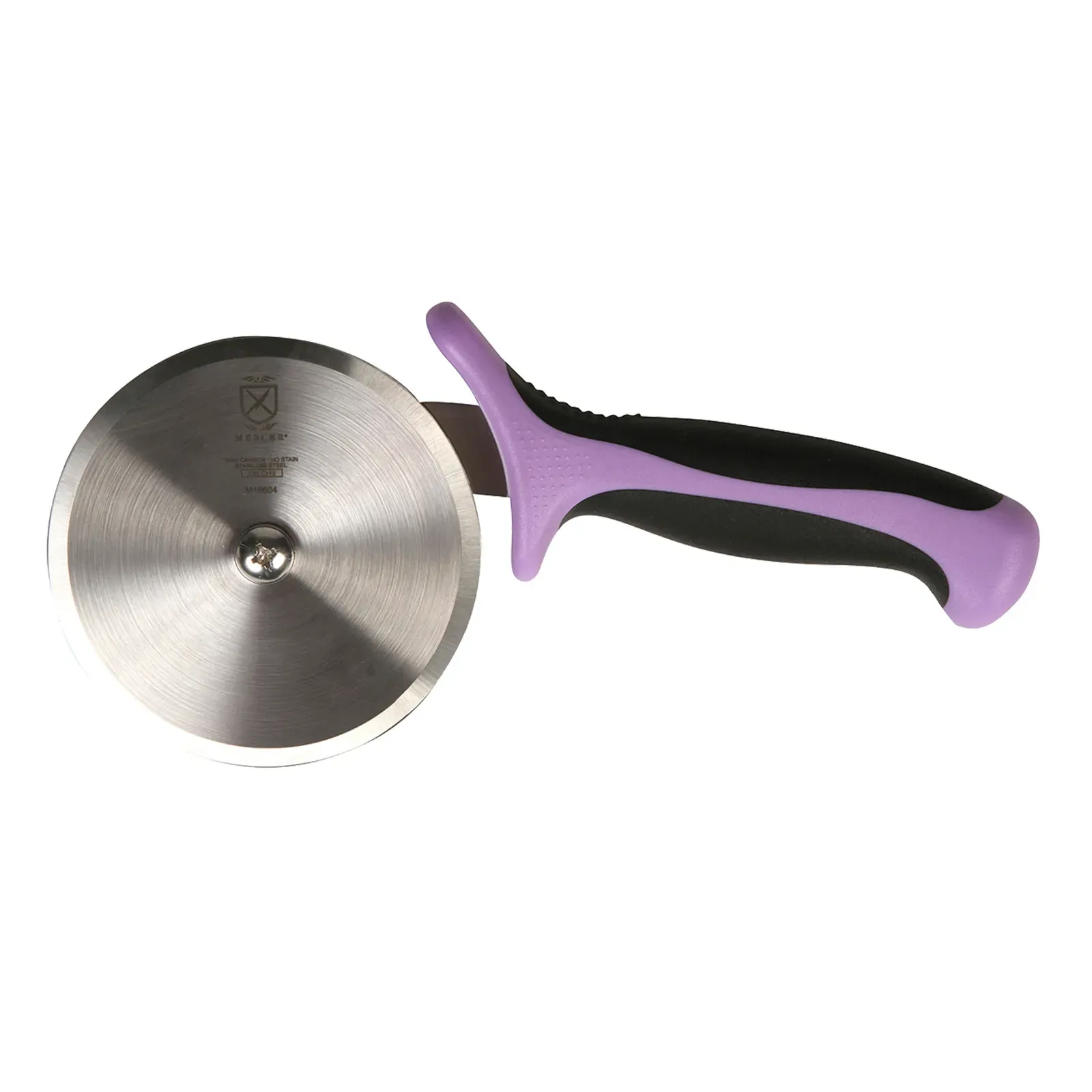 Enhance culinary precision with the Mercer Culinary, M18604PU Pizza Cutter. Designed specifically for commercial restaurant use, this pizza cutter is a must-have tool for any professional kitchen. With its 4" high-carbon steel blade and precision ground edge, it effortlessly slices through even the thickest crusts, ensuring clean and precise cuts every time. The ergonomic Santoprene and polypropylene handle provides a comfortable grip, reducing hand fatigue during long hours of use. The vibrant purple color adds a touch of style to your kitchen while also making it easy to identify among other utensils. Trust Mercer Culinary for quality and durability in all your culinary endeavors. Upgrade your pizza cutting experience with the Mercer Culinary, M18604PU Pizza Cutter.