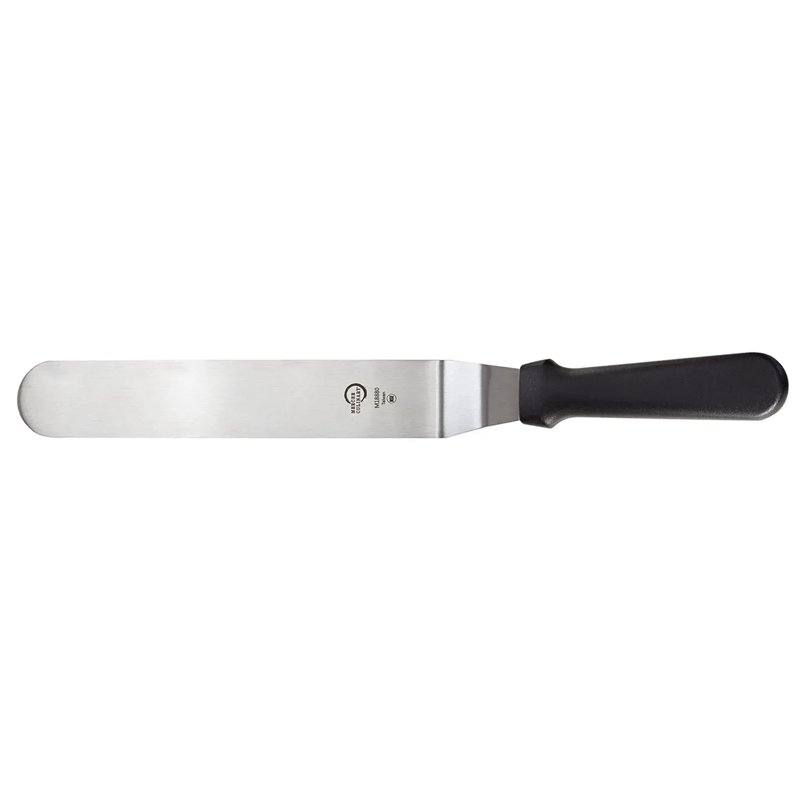 Equip your kitchen for success with the Mercer Culinary, M18880P Turner. This solid stainless steel turner is a must-have tool for any commercial restaurant. With a 10-inch long and 1.5-inch wide blade, it is perfect for flipping and turning food with precision. The tapered ground stain-resistant stainless steel blade ensures durability and easy cleaning, making it dishwasher safe. The molded slip-resistant black polypropylene handle provides a comfortable grip, even in busy kitchen environments. The self-adhesive hang tab label allows for easy storage and organization. NSF certified, this turner meets the highest standards of safety and sanitation. Upgrade your cooking arsenal with this reliable and high-quality turner.