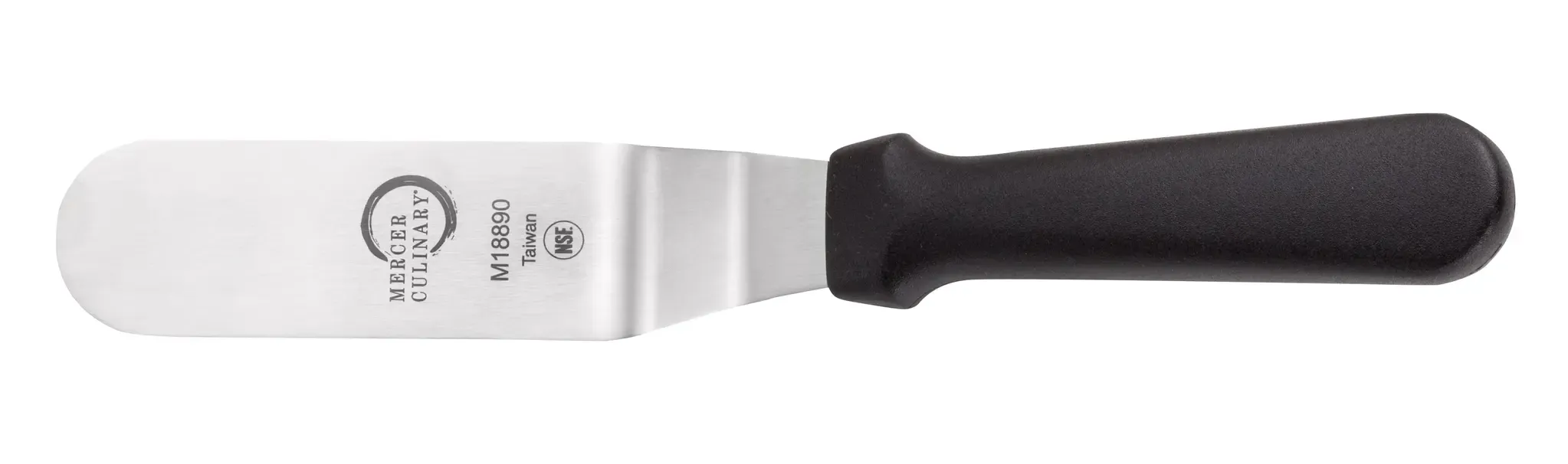 Optimize kitchen workflow with the Mercer Culinary, M18890P, Turner, Solid, Stainless Steel. This turner is a must-have tool for any commercial restaurant. With its solid stainless steel blade and molded slip-resistant black polypropylene handle, this turner is designed to withstand the demands of a busy kitchen. The tapered ground blade allows for easy flipping and lifting of food, while the self-adhesive hang tab label ensures convenient storage. The stain-resistant stainless steel blade is dishwasher safe, making cleanup a breeze. Whether you're flipping burgers on the grill or plating delicate pastries, this turner is up to the task. Trust Mercer Culinary for quality and durability in your restaurant kitchen.