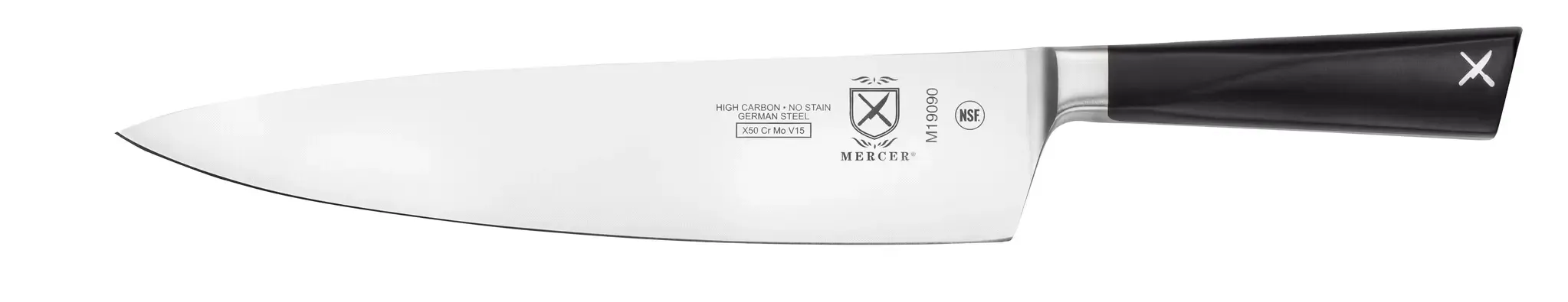 Equip your kitchen for success with the Mercer Culinary, M19090 Chef's Knife. This 9" knife is a must-have tool for any commercial restaurant. Its one-piece precision forged design ensures durability and long-lasting performance, while the high carbon, no-stain German steel blade provides exceptional sharpness and corrosion resistance. The ergonomically designed POM handle offers a comfortable grip, reducing fatigue during extended use. NSF certified, this knife meets the highest standards of safety and sanitation. Whether you're slicing, dicing, or chopping, the Mercer Culinary Chef's Knife delivers exceptional precision and control. Upgrade your culinary arsenal with this essential tool and experience the difference it makes in your restaurant's efficiency and productivity.
