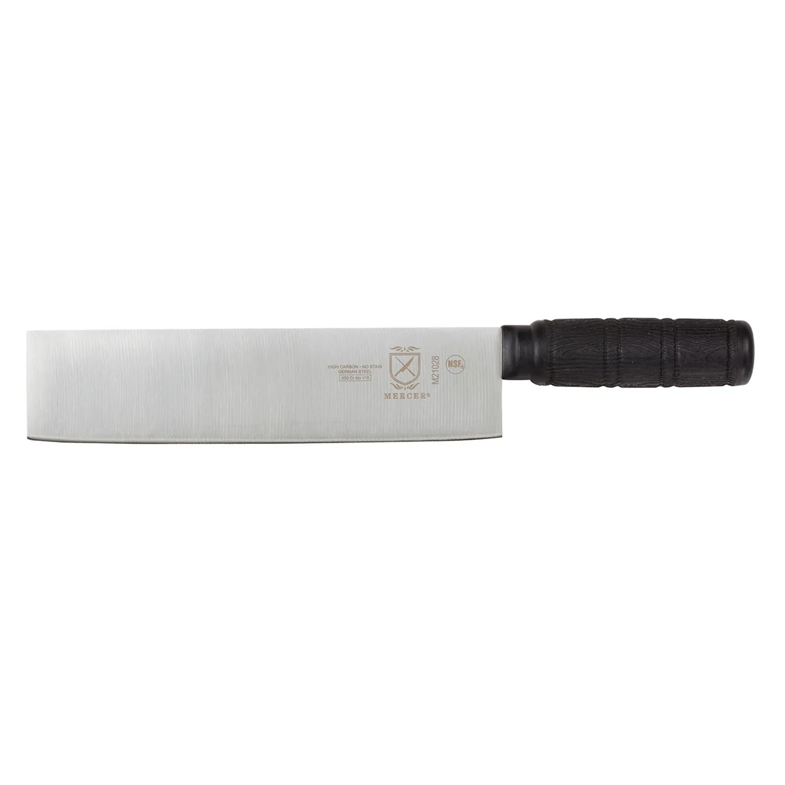 Equip your kitchen for success with the Mercer Culinary, M21028, Knife, Cleaver. This 8" Duck Slicer is a must-have tool for any commercial restaurant. Its narrow blade is specifically designed for slicing and chopping duck and other poultry items with precision and ease. Made from stain-resistant German steel, this knife ensures durability and longevity, even with heavy use in a busy kitchen. The Santoprene handle provides a comfortable and secure grip, reducing the risk of accidents and fatigue during long hours of food preparation. NSF approved, this knife meets the highest standards of safety and sanitation. Upgrade your restaurant's knife collection with the Mercer Culinary, M21028, Knife, Cleaver and experience the difference in performance and quality.