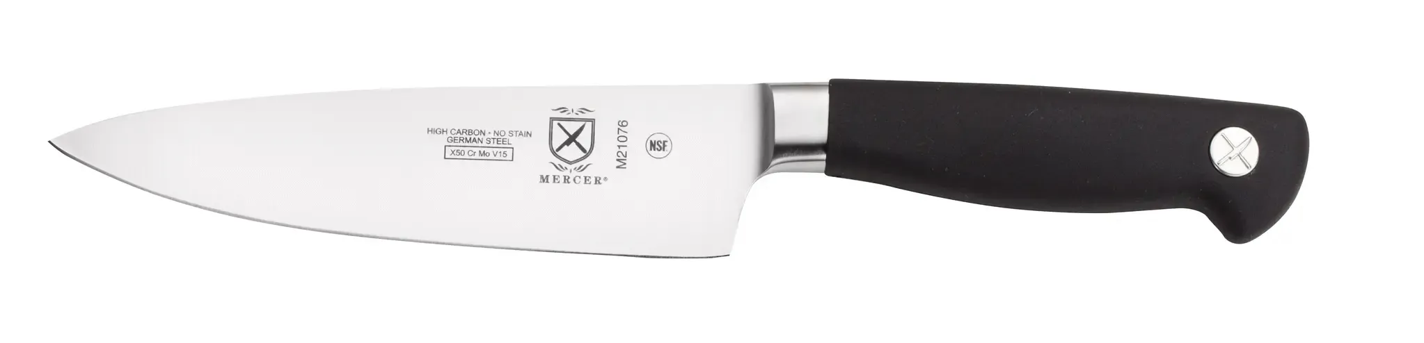 Boost kitchen experiences with the Mercer Culinary, M21076, Knife, Chef. This 6" chef's knife is designed to excel in commercial restaurant settings, delivering precision and durability. Crafted with high carbon German steel, this knife is precision forged for exceptional sharpness and edge retention. The short bolster design allows for easy handling and maneuverability, making it ideal for intricate tasks. The black non-slip Santoprene handle ensures a secure grip, even in busy kitchen environments. With NSF certification, this knife meets the highest standards of safety and sanitation. Whether you're slicing, dicing, or chopping, the Mercer Culinary, M21076, Knife, Chef is a reliable and versatile tool that will enhance your culinary creations. Trust Mercer Culinary for professional-grade knives that deliver exceptional performance in any commercial kitchen.