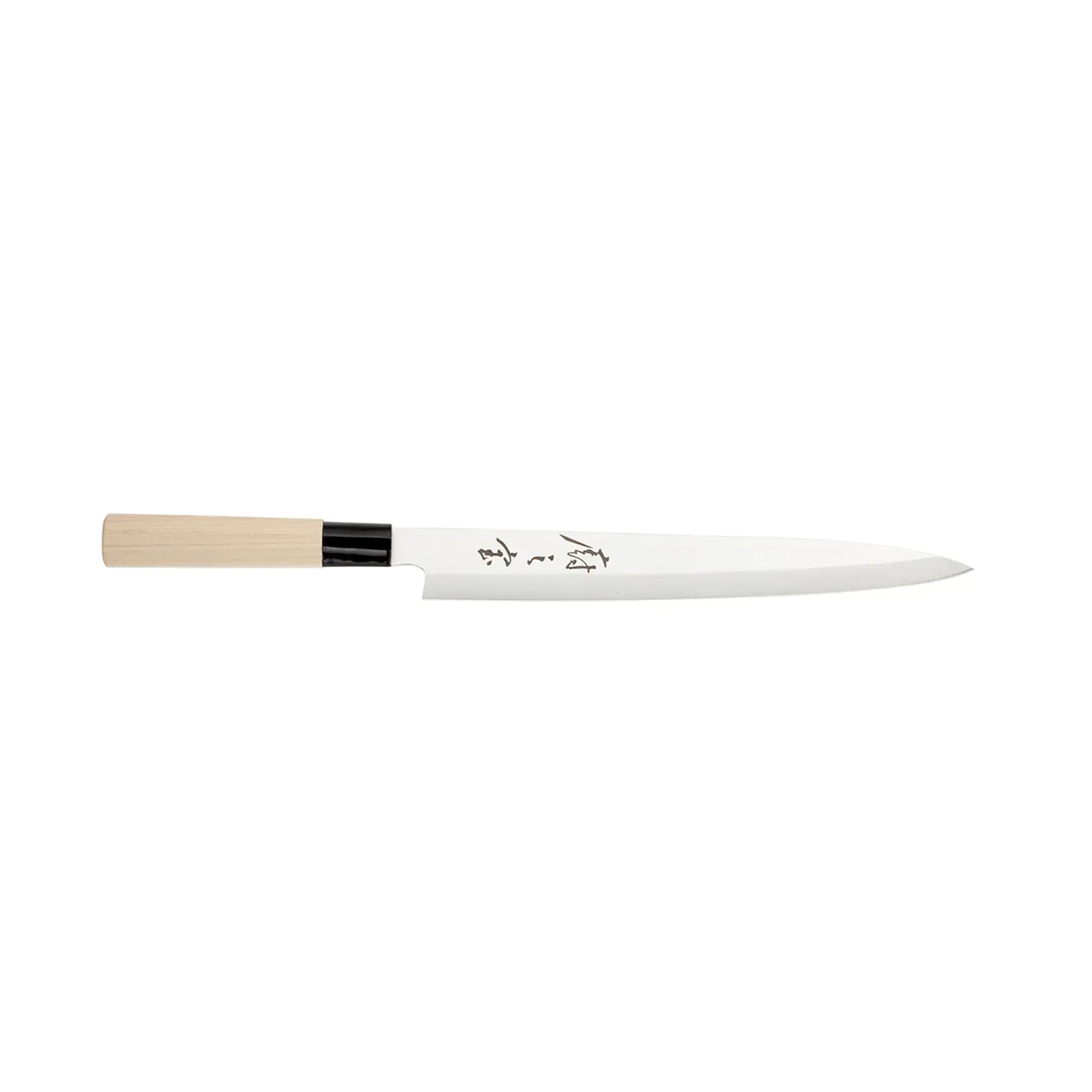 Upgrade culinary efficiency with the Mercer Culinary, M24010, Asian Knife. This 240 mm Sashimi knife is designed to enhance precision and performance in a commercial restaurant setting. Crafted with a high carbon, stain-resistant, German steel blade, this knife ensures long-lasting durability and sharpness. The single-edge blade features a 6-inch cutting edge on one side and a 15-inch cutting edge on the other, allowing for versatile slicing and dicing techniques. The stamped blade design adds flexibility and ease of use, while the wood handle provides a comfortable grip for extended use. NSF certified, this knife meets the highest standards of safety and sanitation. Elevate your culinary skills and achieve exceptional results with the Mercer Culinary, M24010, Asian Knife.