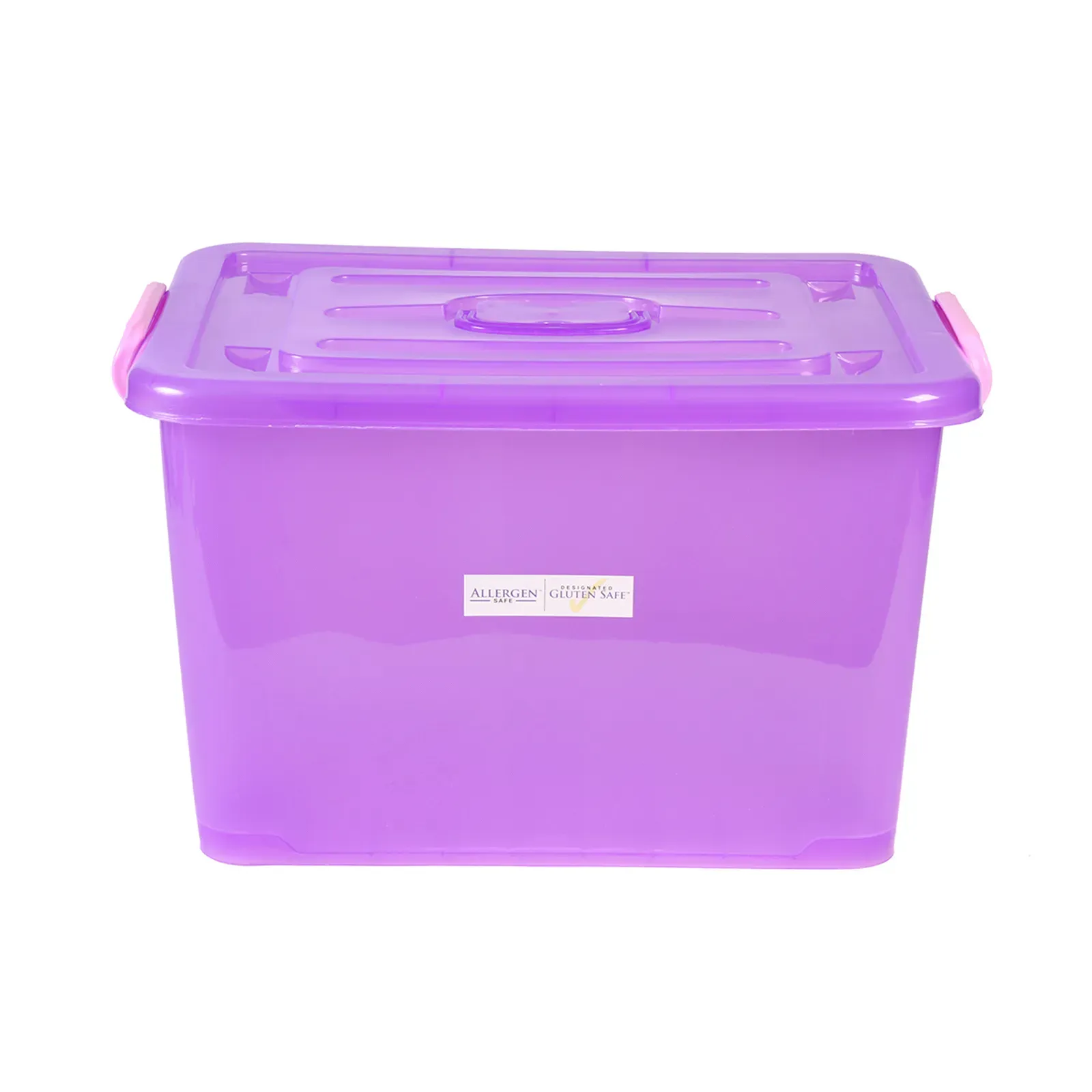 Maximize kitchen productivity with the Mercer Culinary, M33064, Tote Box. This allergen safety storage tote is designed to meet the demands of a commercial restaurant setting. With a capacity of 10-2/3 gallons, it provides ample space for storing ingredients, prepped food, or even dirty dishes. The top interior measures 17-1/8" x 12-1/2", allowing for easy stacking and organization. The purple translucent polyethylene body not only adds a pop of color but also allows for quick identification of contents. The lid features locking tabs and a recessed folding handle, ensuring secure and convenient transportation. Whether you need to store fresh produce, marinating meats, or leftovers, this tote box is a reliable and versatile solution. Trust Mercer Culinary for high-quality, durable products that enhance efficiency and streamline operations.