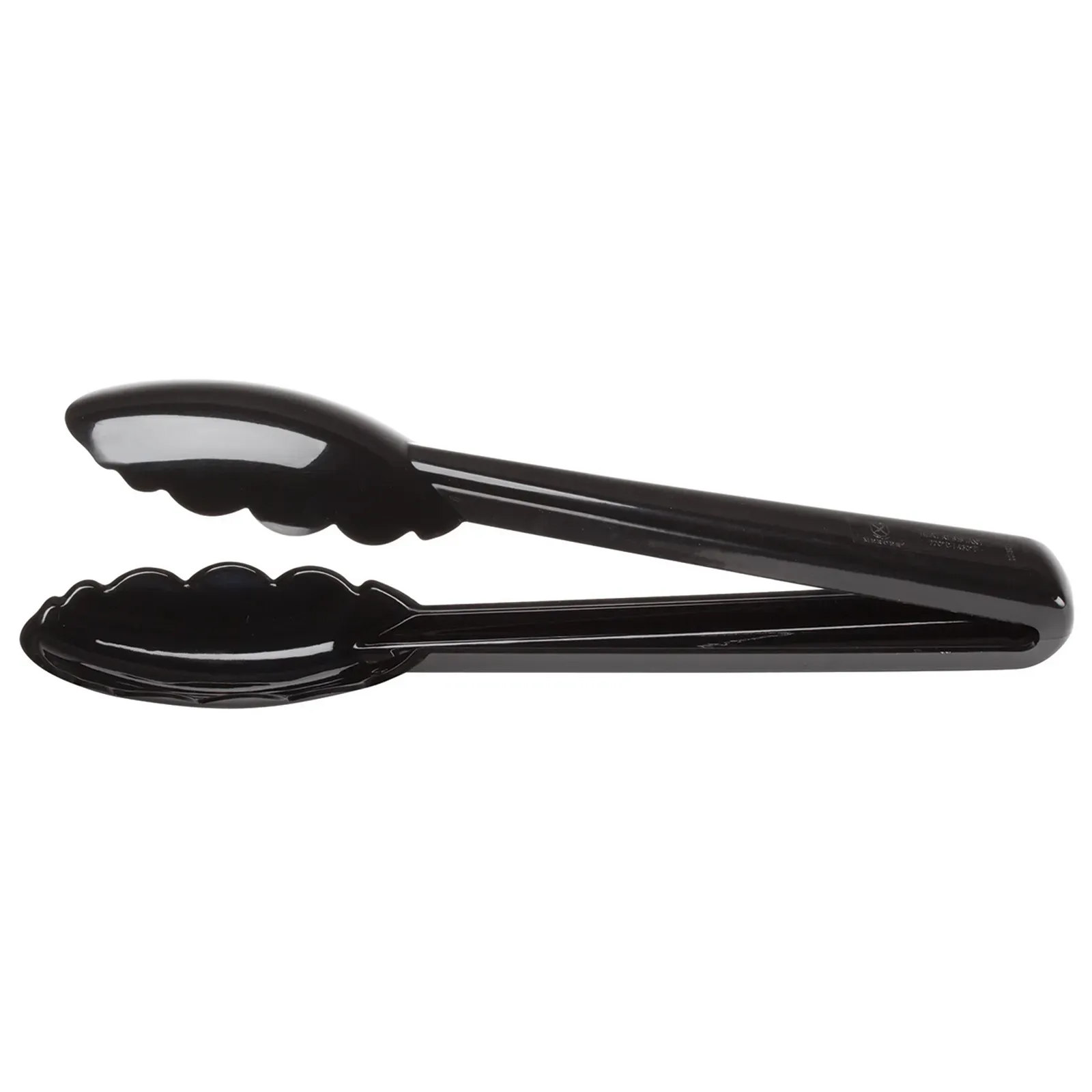 Optimize kitchen workflow with Mercer Culinary, M35100BK Tongs. These high-quality serving/utility tongs are a must-have for any commercial restaurant. With a length of 9-1/2 inches, these tongs provide the perfect balance of control and reach. The scalloped ends ensure a secure grip on food items, making it easy to serve and handle even the most delicate dishes. Made from high-temperature, impact-resistant nylon, these tongs are rated to withstand temperatures up to 430°F, ensuring durability and longevity in a busy kitchen environment. The one-piece construction eliminates the risk of food buildup and makes cleaning a breeze. The sleek black design adds a touch of sophistication to any table setting. NSF certified, these tongs meet the highest standards of safety and hygiene. Upgrade your kitchen tools with Mercer Culinary, M35100BK Tongs and experience enhanced efficiency and convenience.