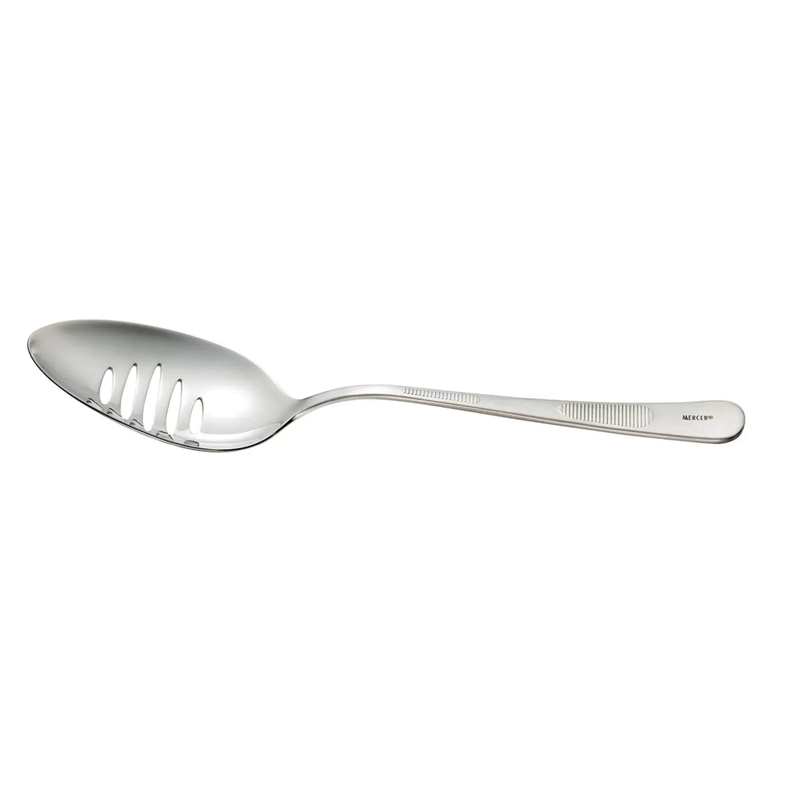 Optimize kitchen workflow with the Mercer Culinary, M35139, Plating Tool. This versatile tool is designed to enhance precision and control in commercial restaurant settings. With its deep well bowl and mirror finish, this plating spoon allows for effortless plating and presentation of dishes. The dual micro-serration provides a better grip, ensuring that delicate ingredients are handled with care. The satin finish handle offers a comfortable and secure grip, even in fast-paced kitchen environments. Made from 18/8 stainless steel, this plating tool is durable and resistant to corrosion, ensuring long-lasting performance. Whether you're a professional chef or a culinary enthusiast, the Mercer Culinary, M35139, Plating Tool is a must-have for creating visually stunning and appetizing dishes. Elevate your culinary creations with this essential tool.
