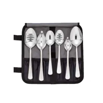 Boost kitchen experiences with the Mercer Culinary, M35151, Plating Tool. This 7-piece set includes everything you need to create stunning and professional-looking dishes. The set features a M35142 saucier, M35143 petite saucier, M35138 9" solid spoon, M35140 7-7/8" solid spoon, M35139 9" slotted spoon, M35141 7-7/8" slotted spoon, and a M30920 heavy-duty compartment roll for easy storage and transportation.