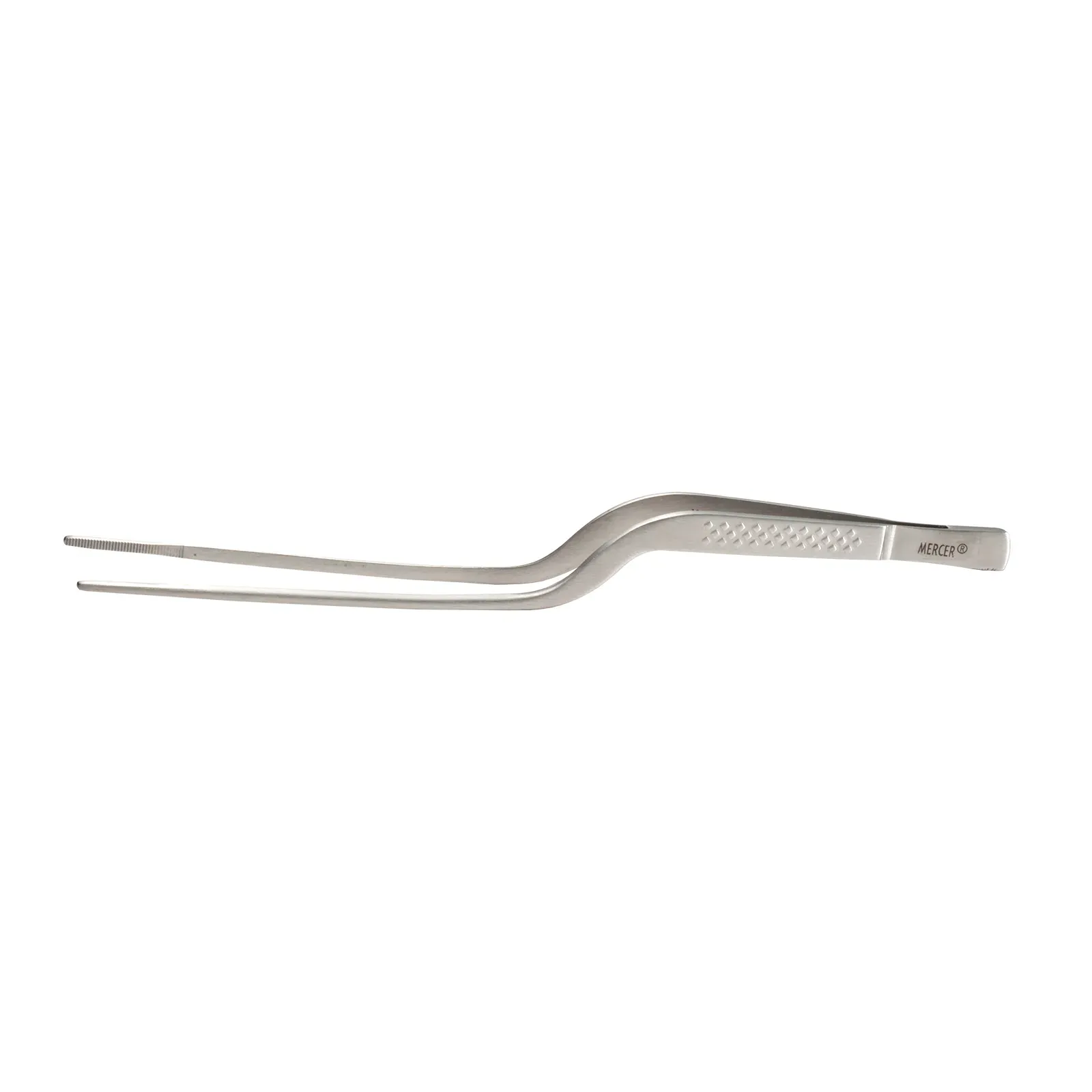 Maximize kitchen productivity with the Mercer Culinary, M35237 Tongs, Tweezer. These precision plus tongs are designed to enhance your restaurant's efficiency and performance. With a length of 7-7/8", these tongs provide the perfect balance of control and reach. The offset style allows for easy handling and maneuverability, ensuring a comfortable grip during use. The dual raised cross-hatch grips on the outside provide stability, while the ultra-fine tips allow for precise handling of delicate ingredients. The serrated tips on the inside offer a better grip, ensuring a secure hold on food items. Made from specially hardened 18/8 stainless steel with a satin finish, these tongs are not only durable but also resistant to corrosion and staining. Trust Mercer Culinary for high-quality, reliable kitchen tools that will elevate your restaurant's culinary experience.
